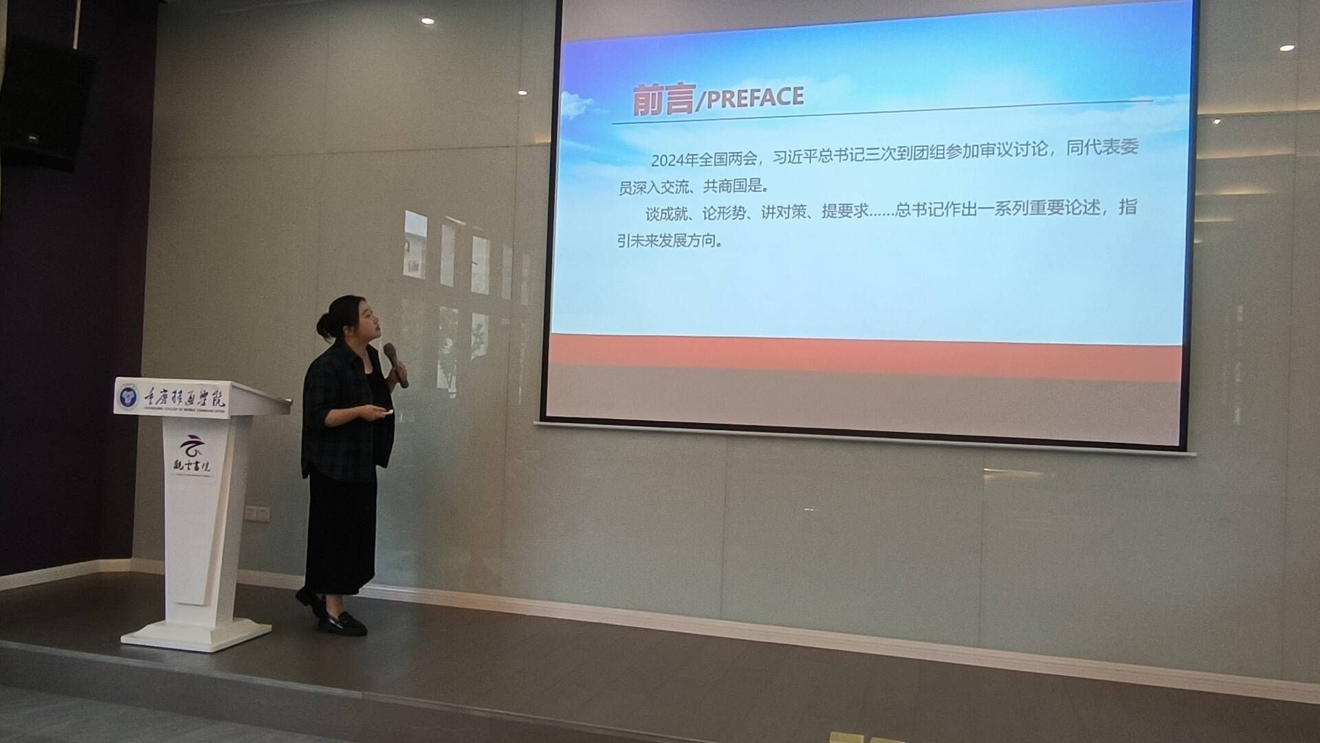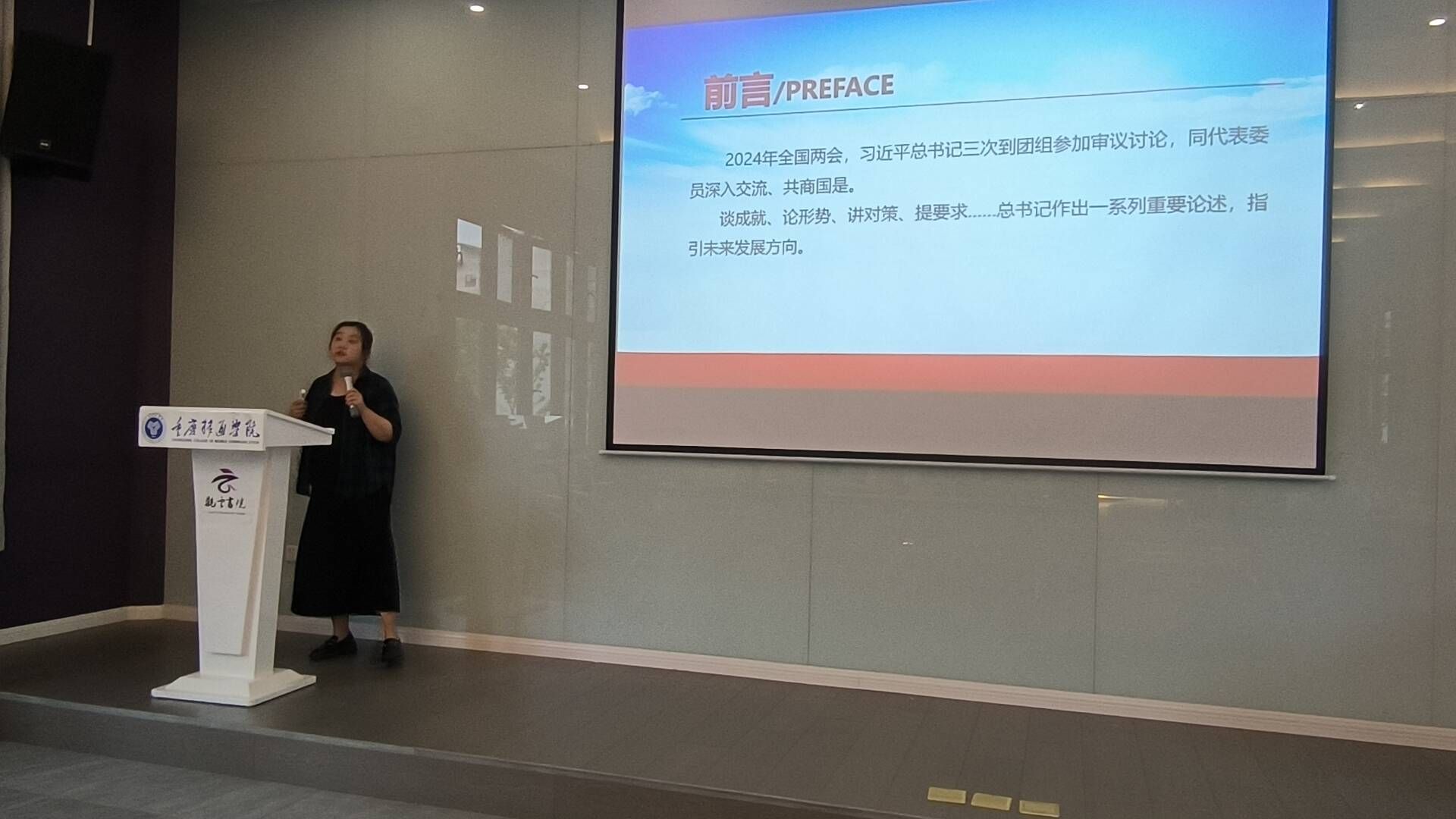 为了引导各同学学习2024年全国两会精神,推动大家成为科技创新和产业创新的一份子,进一步掌握网络强国的创新主动权,保持定力,继续沿着正确道路前进。2024年4月25日,本次青马理论课程特此邀请到了马克思主义学院何苗老师带来《读懂2024年全国两会金句》的主题培训,在观云书院冬至·多媒体功能室成功举行。