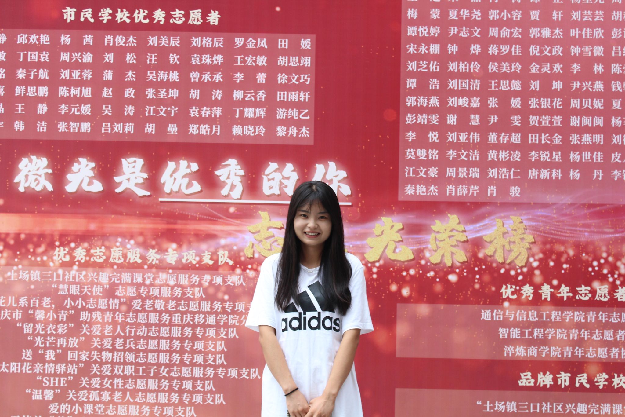 从“校级学年优秀志愿者”到“綦江区最美志愿者”再到“重庆市志愿服务先进个人”,从学习到实践,从个人到团队,荣誉与成就不仅是对我过去努力的肯定,更是对未来的激励,指引着我不断前行。但这些是我志愿人生中的一个“惊叹号”,而我更想要的却是由一个个小点组成起来的、无穷的“省略号”。