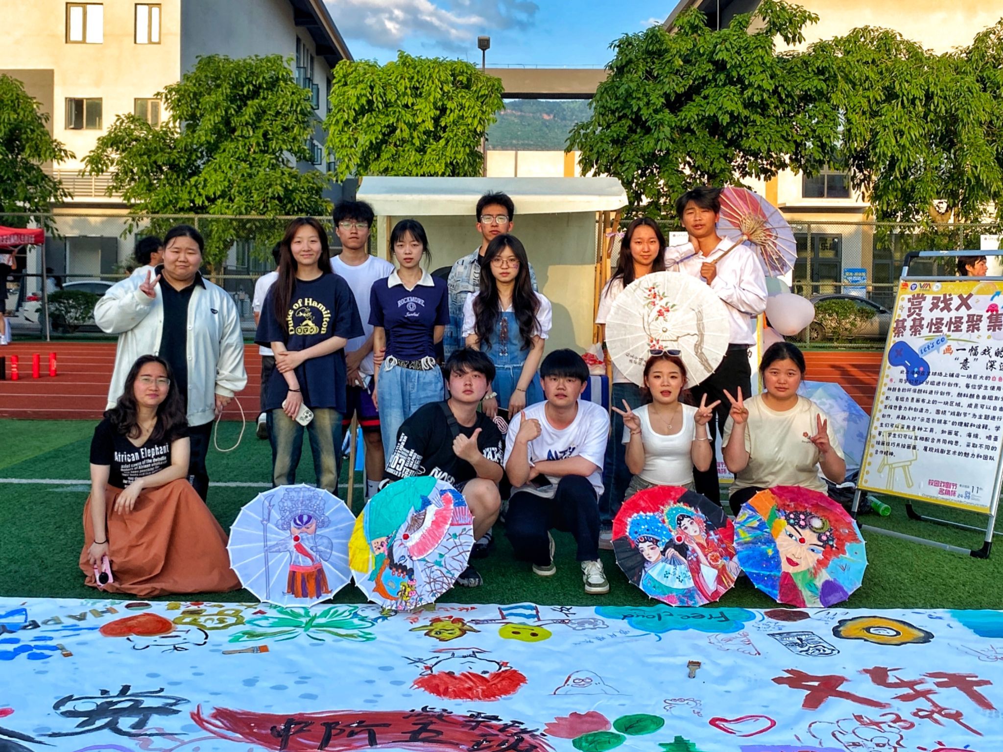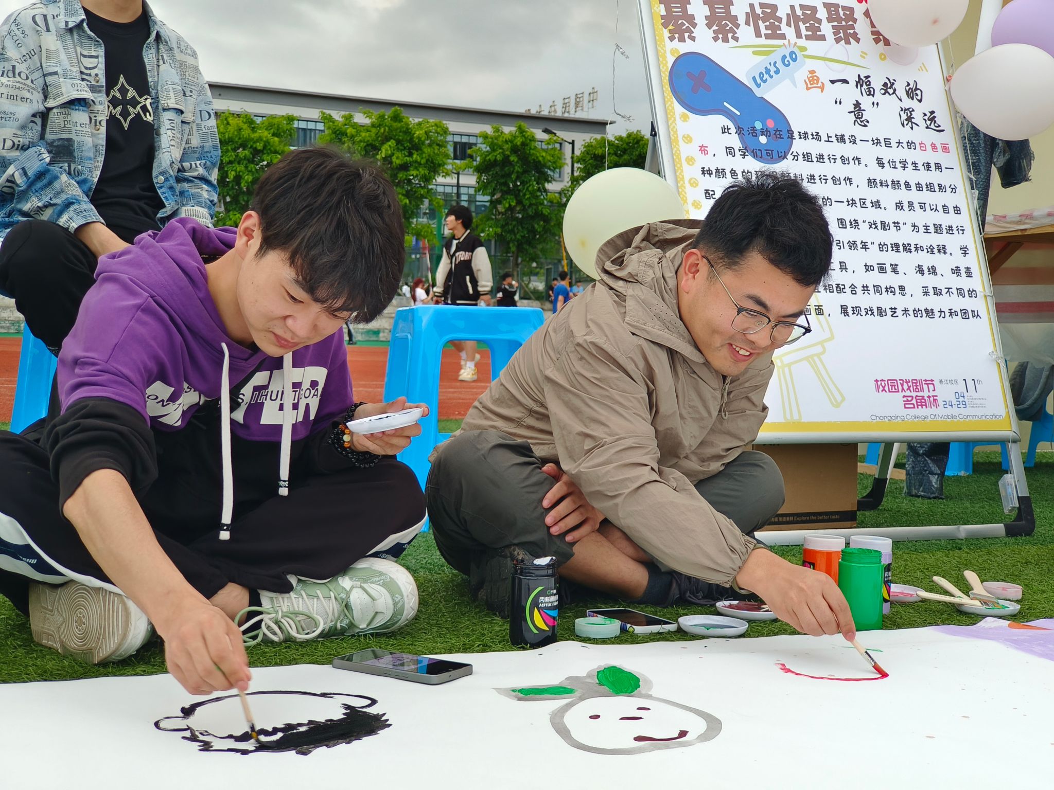 四月夏将至,活力满移通。为了展现青马青年青春活力,体现青马青年的艺术修养,第十四期“青马工程”完满教育学生骨干培养计划中阶五班的全体学员响应学校号召,在2024校园“名角杯”戏剧节与“移通体验官”2024年校园市民开放日中,分别于4月25日18:00-19:30、4月27日16:30-19:30两个时间段,“綦”聚校足球场开展“綦綦怪怪聚集地×画一副戏的‘意’深远”活动。