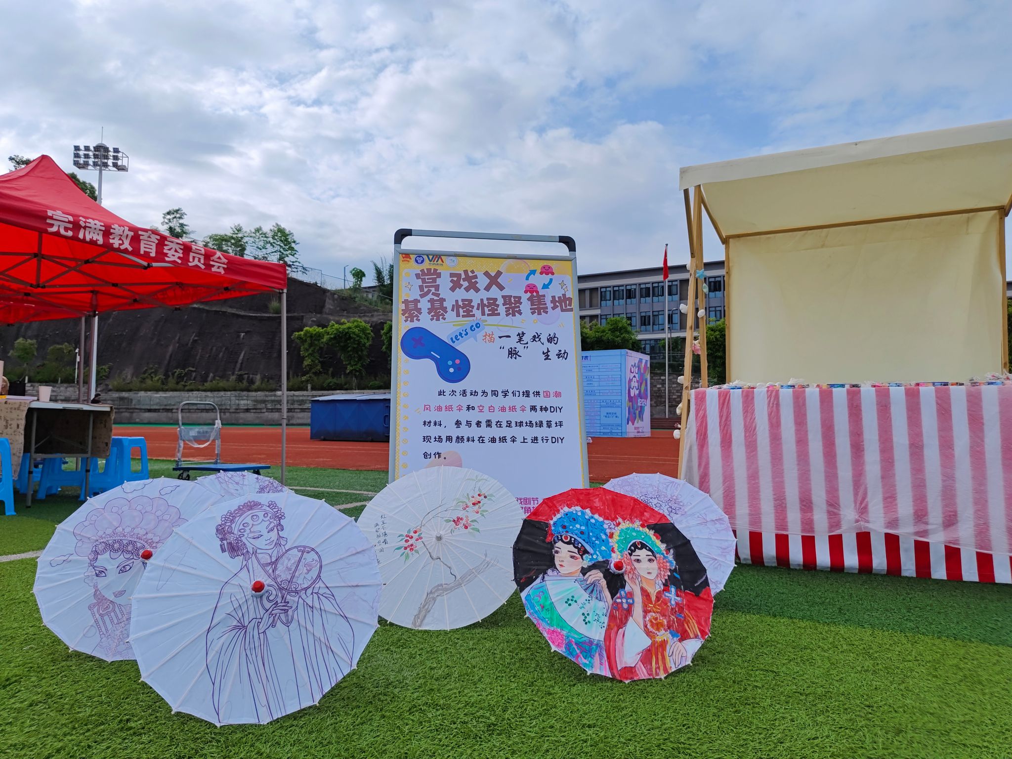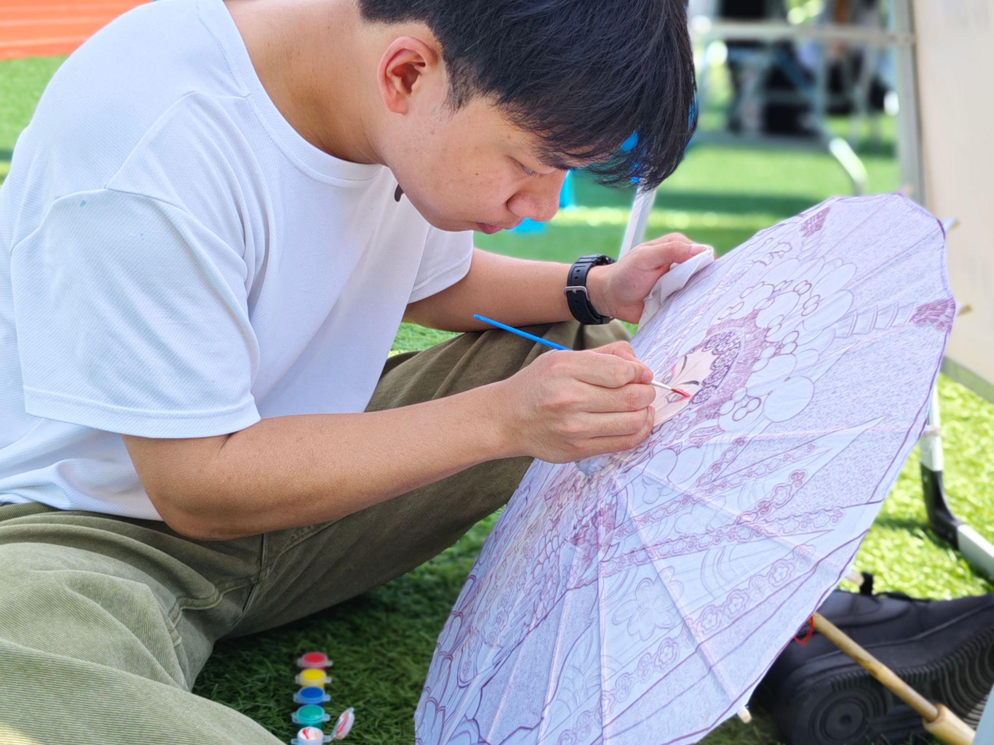 在春意盎然的四月,第十四期“青马工程”完满教育学生骨干培养计划中阶六班以此次“名角杯”校园戏剧节与市民开放日为契机,精心策划了“妙笔DIY,传承非遗梦”油纸伞DIY活动。本次活动于2024年4月25日18:00-19:30、4月27日16:30-19:30两个时间段在足球场顺利举行。
