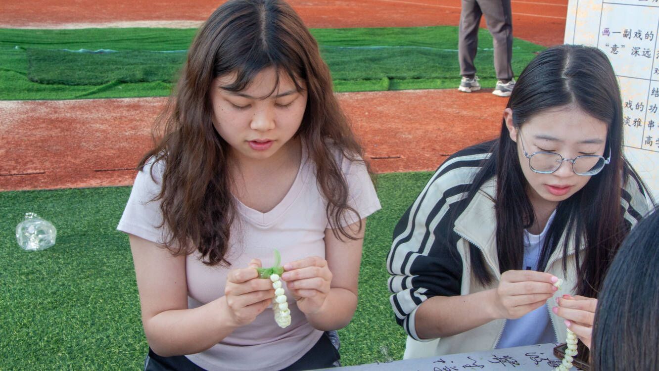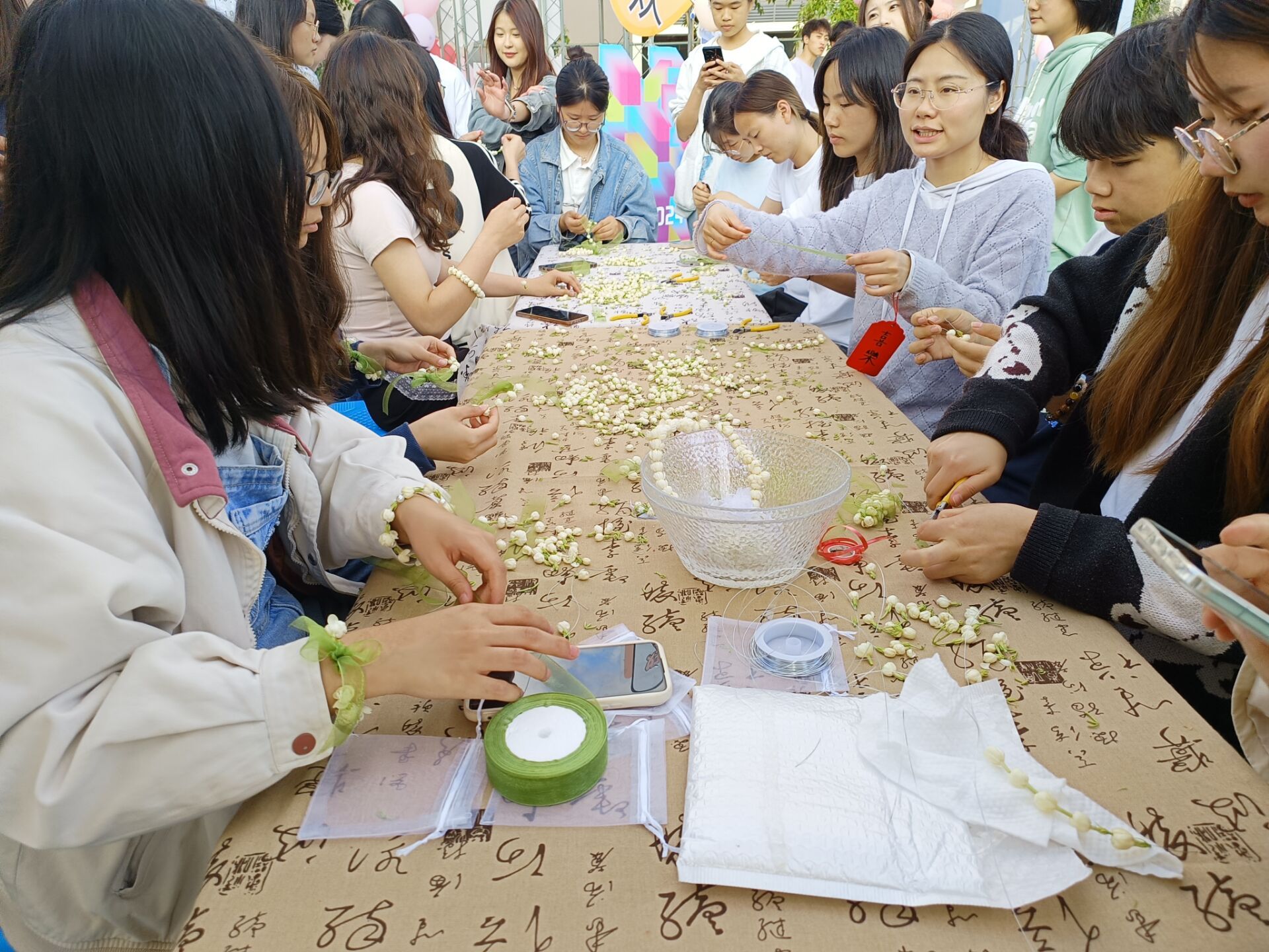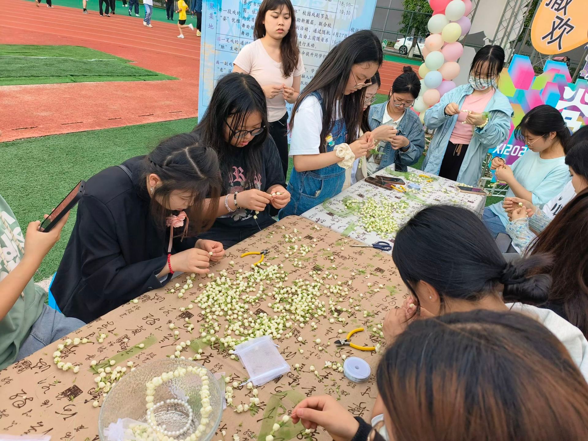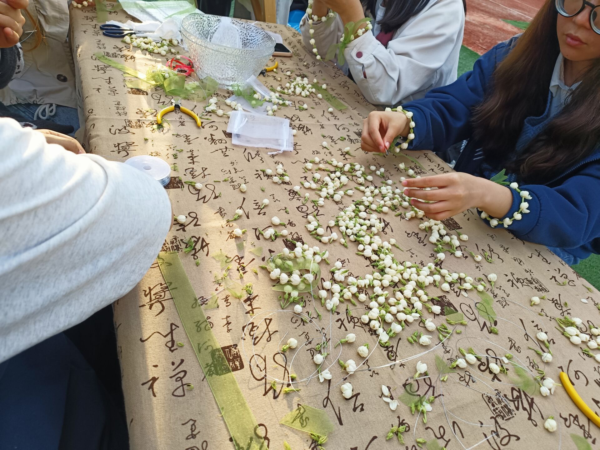 为加强青马学员动手创造能力,培养同学们艺术审美和手工技能,同时通过向校园群体展示青马工程班级学生的积极态度,传递正能量,激励更多同学参与到有意义的活动中来,青马工程完骨中阶七班依托綦綦怪怪聚集地外围活动,于4月25日在校足球场开展“茉香轻起,闻香见戏”为主题的茉莉花手串活动,通过“以戏入香”的理念将戏剧艺术中传达的情感与思想融入,以茉莉花的独特清新气味诠释存于氤氲中的艺术。