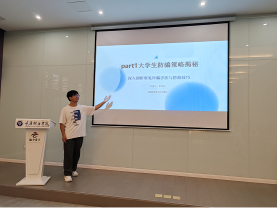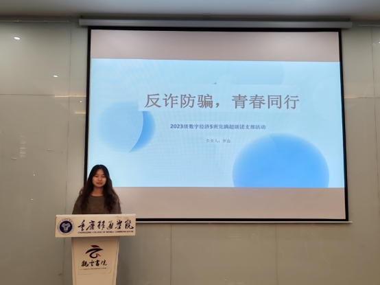 活动伊始,团支部书记罗垚同学进行了热情洋溢的开场发言。她强调到,防诈骗教育不仅是一项社会责任,更是对青春学子们自身安全的保障。她希望同学们能够珍惜这次难得的学习机会,认真听讲,积极参与,共同提高防诈骗能力。