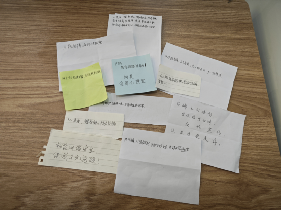 活动最后,同学们积极参与到了书写宣传标语的环节中。大家纷纷拿起笔,一条条充满创意的宣传标语便跃然纸上。这些标语看似简洁明了,却直击人心,彰显了同学们为反诈防骗宣传贡献力量的坚定决心。