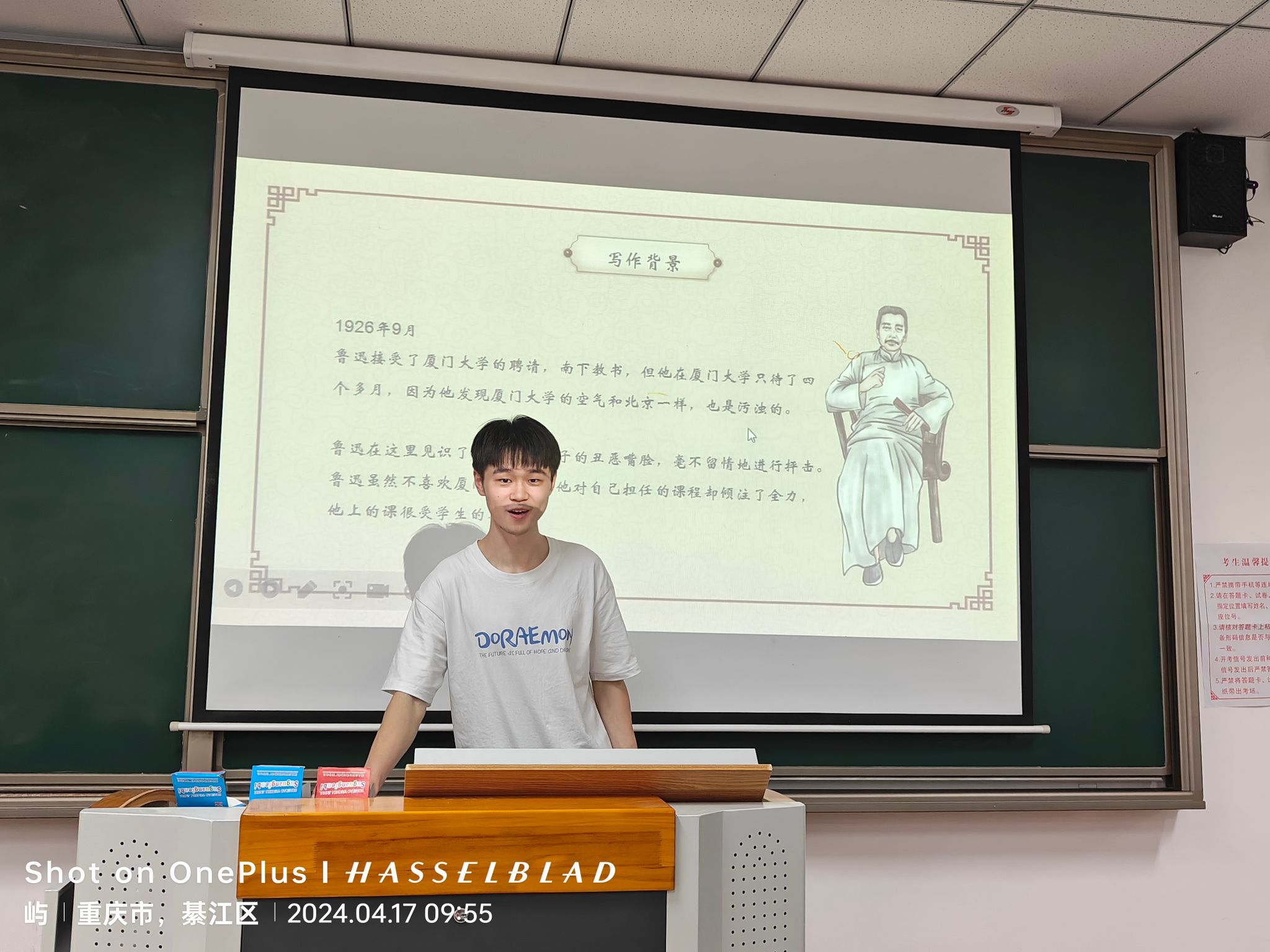 杨峻龙同学围绕鲁迅先生的《朝花夕拾》展开了深入的讨论。这部作品以独特的视角展现了鲁迅童年和青年时期的生活片段,同学们在分享中纷纷表示,通过阅读这部作品,更加深入地理解了鲁迅先生的文学思想和爱国情怀。大家还就书中描绘的旧时社会风俗和人物性格进行了热烈的探讨,体会到了鲁迅先生笔下的人文关怀。