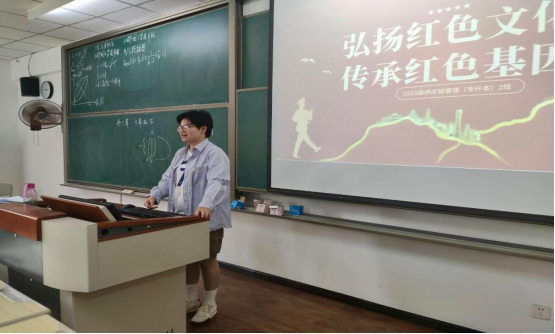 弘扬红色文化,传承红色基因,争做时代新人。为更好地让新一代大学生更深层次了解红色革命文化的精神和奋斗历程,增强文化认同感和自信心,2023级供应链管理专升本2班于2024年4月12日举办了“弘扬红色文化,传承红色基因”主题活动。