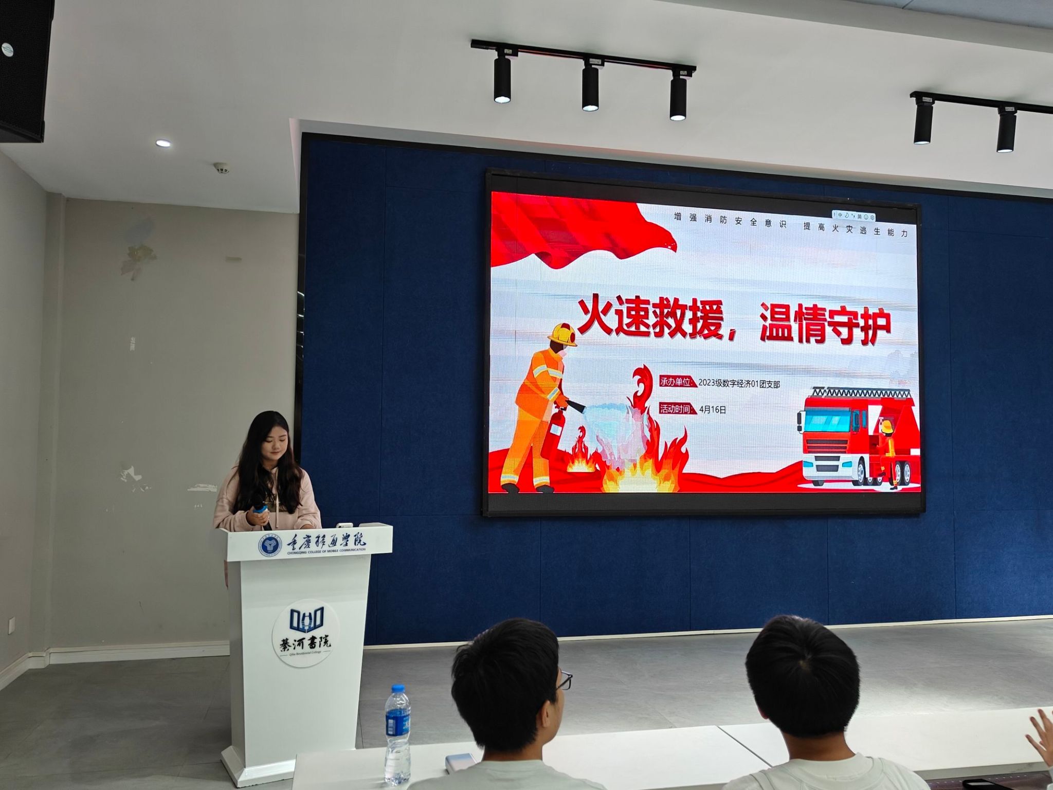 生命无价,急救有方;掌握技能,护航生命。为了让同学们能更深刻地领会应急救援工作的重要性,增强同学们的应急救援能力,能在紧急情况下做到迅速有效地、有序地开展救援工作,把事故危害减少到最低程度。2023级数字经济01团支部于2024年4月12日19:00在綦河书院观涛多功能室举办了以“火速救援,温情守护”为主题,培养大学生应急救援能力的完超活动。本次活动还特别邀请到重庆移通学院竞技体育营地教育中心的张桃老师为同学们讲解应急救援的正确方法。