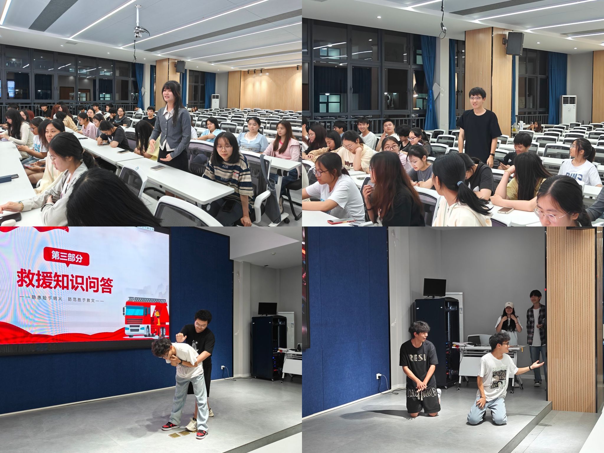 “纸上得来终觉浅,绝知此事要躬行”。在应急救援知识快问快答和实践环节中,同学们信心十足,纷纷举手,抢着回答问题,在实践环节更是大展身手,将自己刚刚学到的应急技巧在台上大方地向同学们展现。而台下的观众们也化身为评委,在观看的同时还指出了台上同学在实践中所犯的错误,并积极指导改正。在整个环节中,随着一阵阵欢声笑语,应急救援知识也深深地印刻在了同学们的心中。
