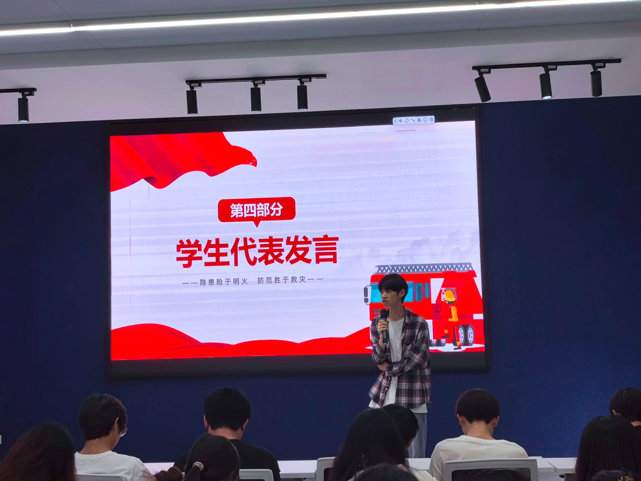 在充满乐趣、充满知识的问答与实践环节之后,学生代表贺杨鹏同学上台发表了活动感言和总结。他提到:本次活动所学的均为我们生活中常见的应急救援事故中会用到的知识,但我们或许会因为自身没有实操经历而缺乏实践经验,遇见紧急事件时会害怕恐惧,以至于在真正面对的时候会不知所措或出现错误的救援行为,对被救助的人造成更大的伤害。因此,希望同学们能够将应急救援知识牢记在心,确保在关键时刻能够派上用场。