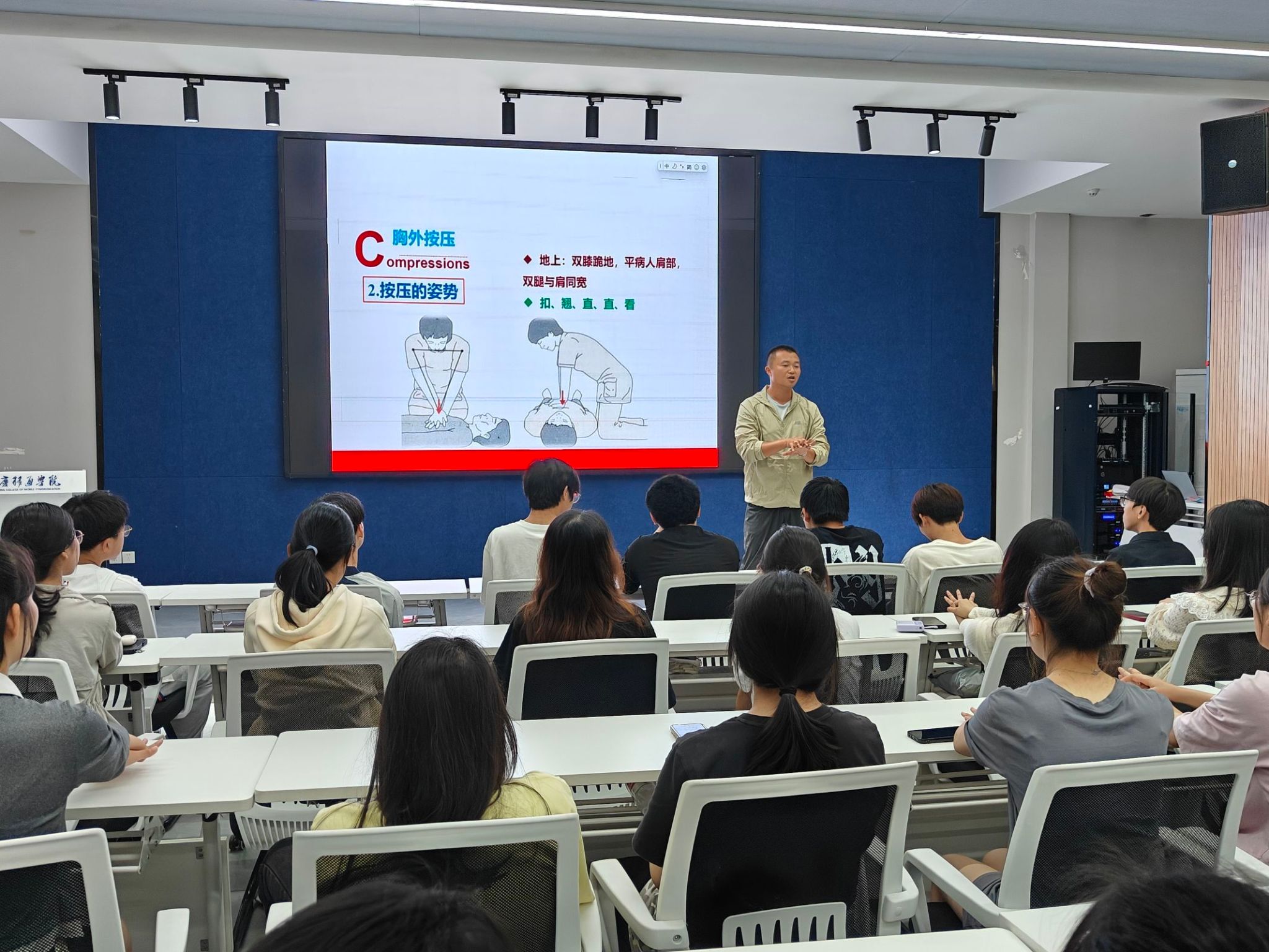 随后,张桃老师以案例分析和实操演习相结合的方式,分别从“拨打紧急救援电话的正确回答方式”“应急救援的程序”“创伤救护四项技术”“意外伤害种类和救援方法”等多个方面向学生深度剖析应急救援知识。通过张桃老师生动形象的演示和讲解,同学们也更加直观地感受到了应急救援的重要性,填补了自己在应急救援知识方面的空缺,同时也学会了如何更快速高效地在紧急情况下做到临危不乱、镇定自若地进行救援工作。