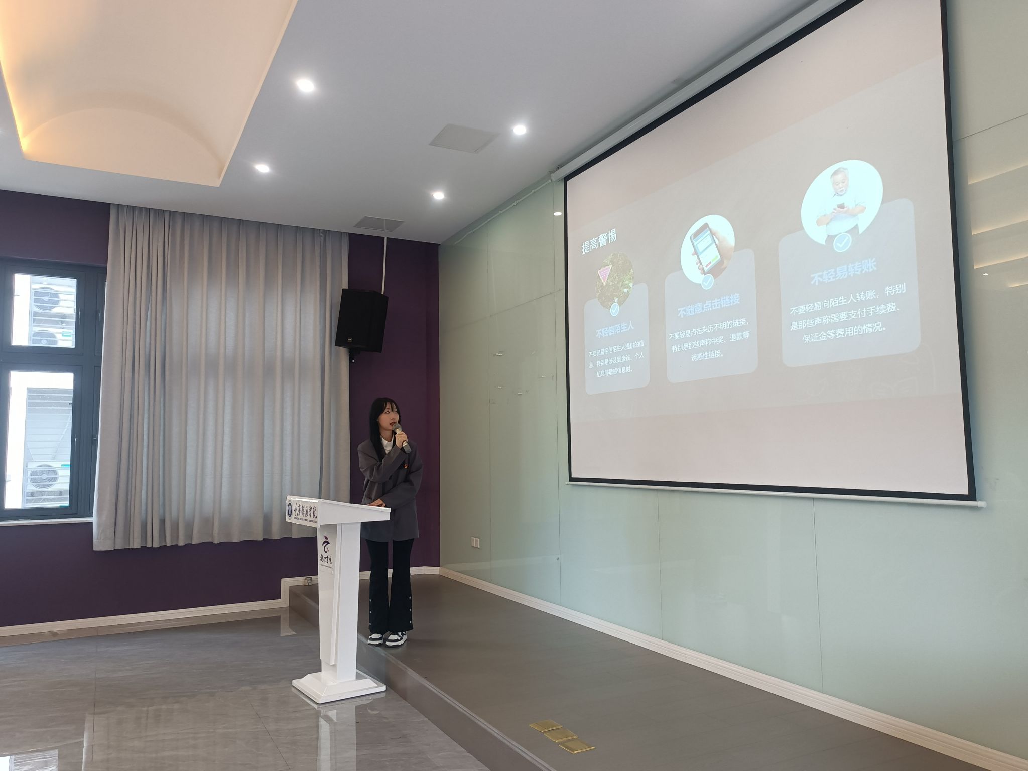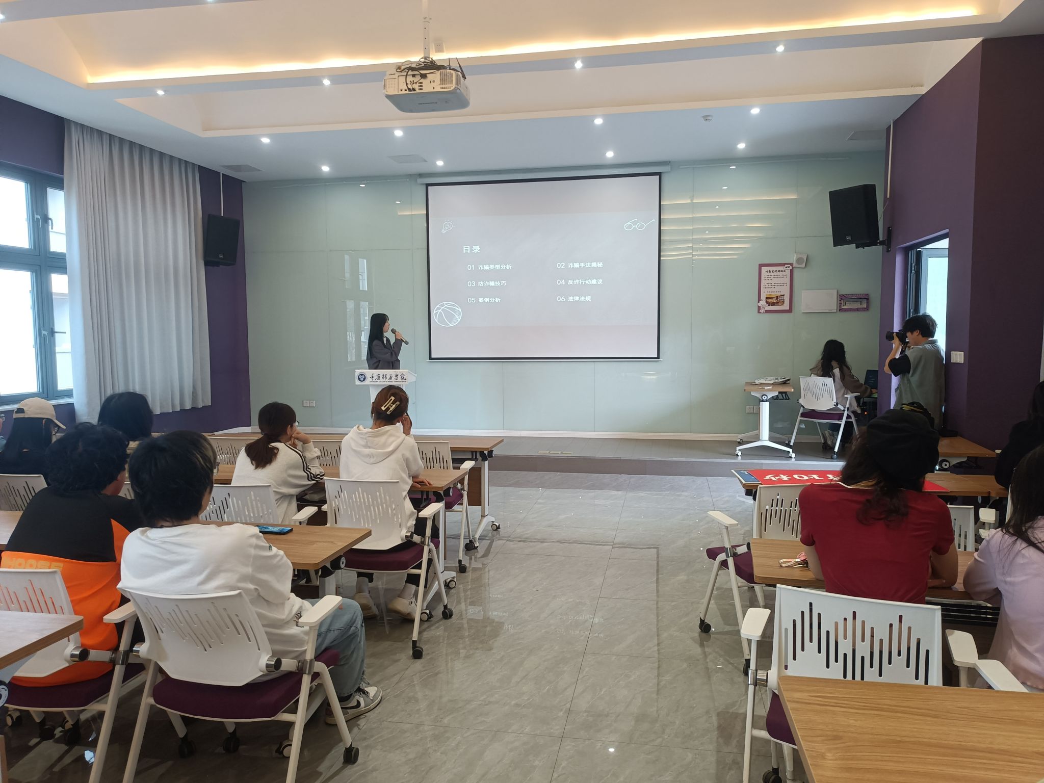 在我们充满活力和激情的大学生活中,不仅有知识的汲取和成长的喜悦,也潜藏着一些看不见的风险。如今,诈骗分子的手段越发多样,他们可能潜藏在我们生活的各个角落,试图利用我们的单纯和信任来达到他们的不良目的。为此,数字经济6班于4月12日上午10:00在观云书院冬至·多媒体教室开展了“防诈骗反诈”宣讲活动,本次宣讲由团支书杨晨希同学主讲。