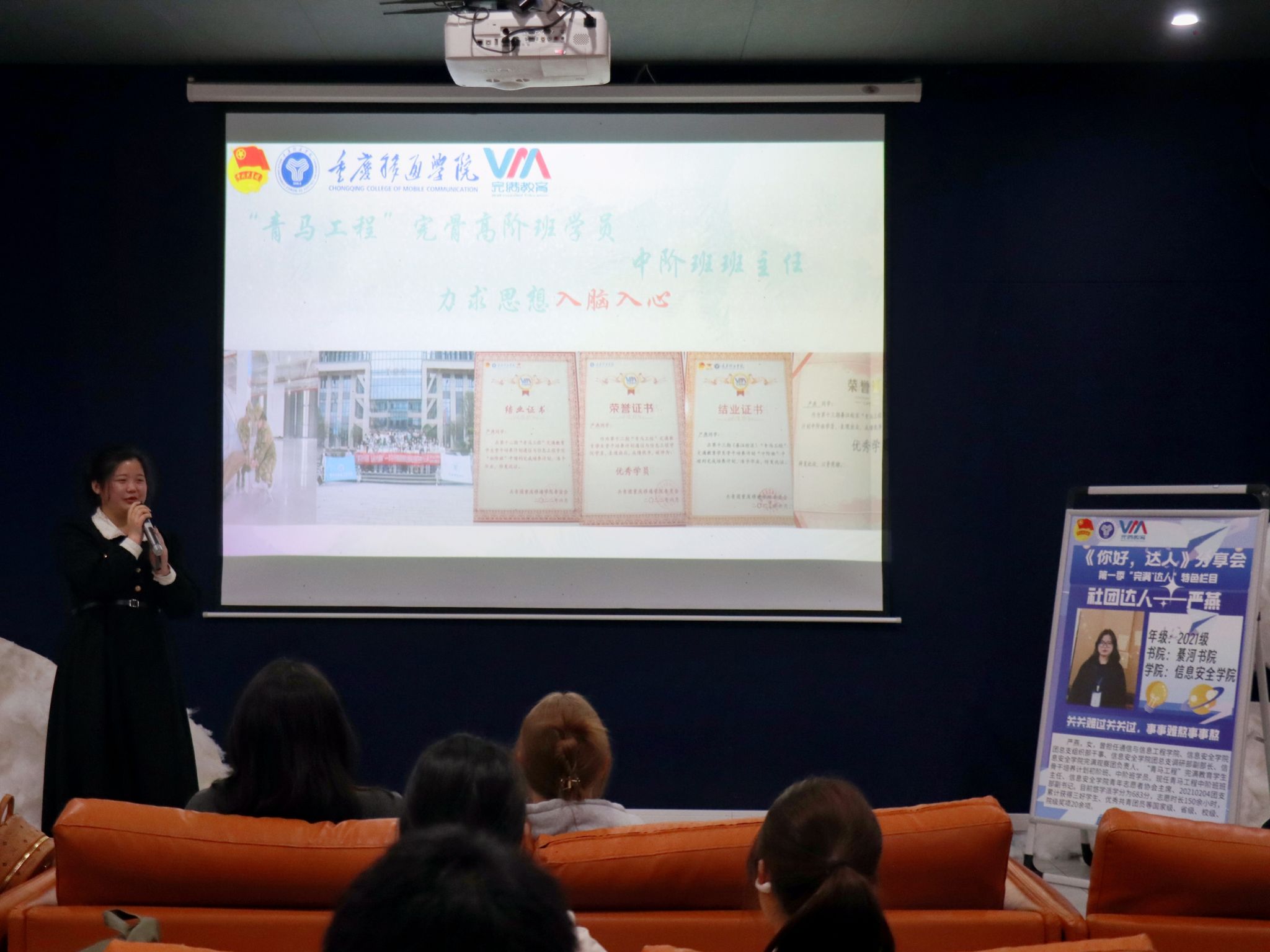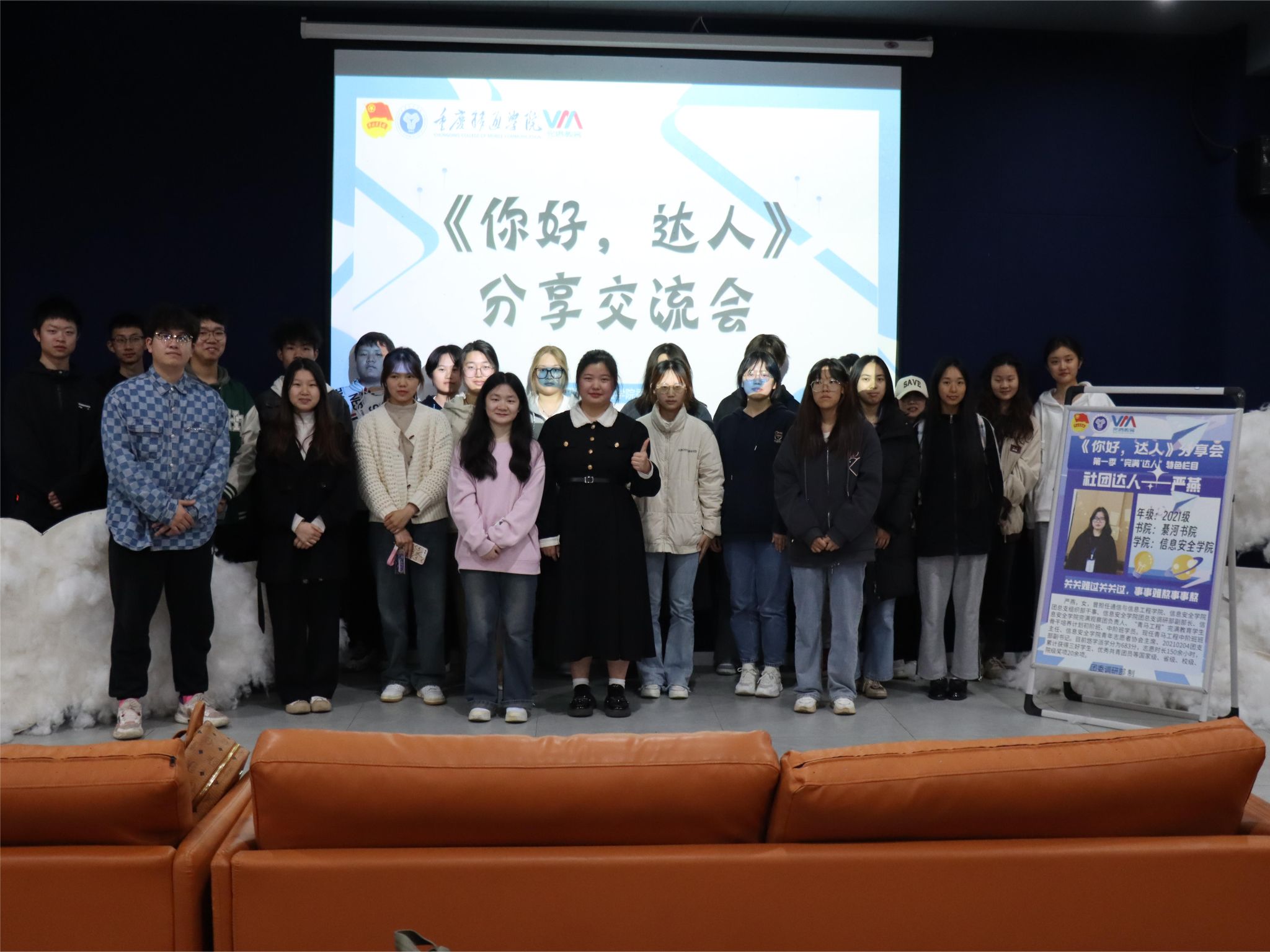 人生漫长,晴雨交加,但若是心怀热爱,即使岁月荒芜,亦能奔山赴海,为充分发挥“完满·达人”的榜样力量,进一步发挥榜样引领、辐射带动作用,在学生群体中激发“向优秀看齐、向榜样看齐”的热情,促进学生全面发展,由校团委调研部主办的第三期《你好,达人》分享会3月20日在綦河书院二号楼银河•影音室举办,本次榜样故事分享的主人公是来自信息安全学院的社团达人——严燕,让我们一起走进她的“完满榜样故事”。