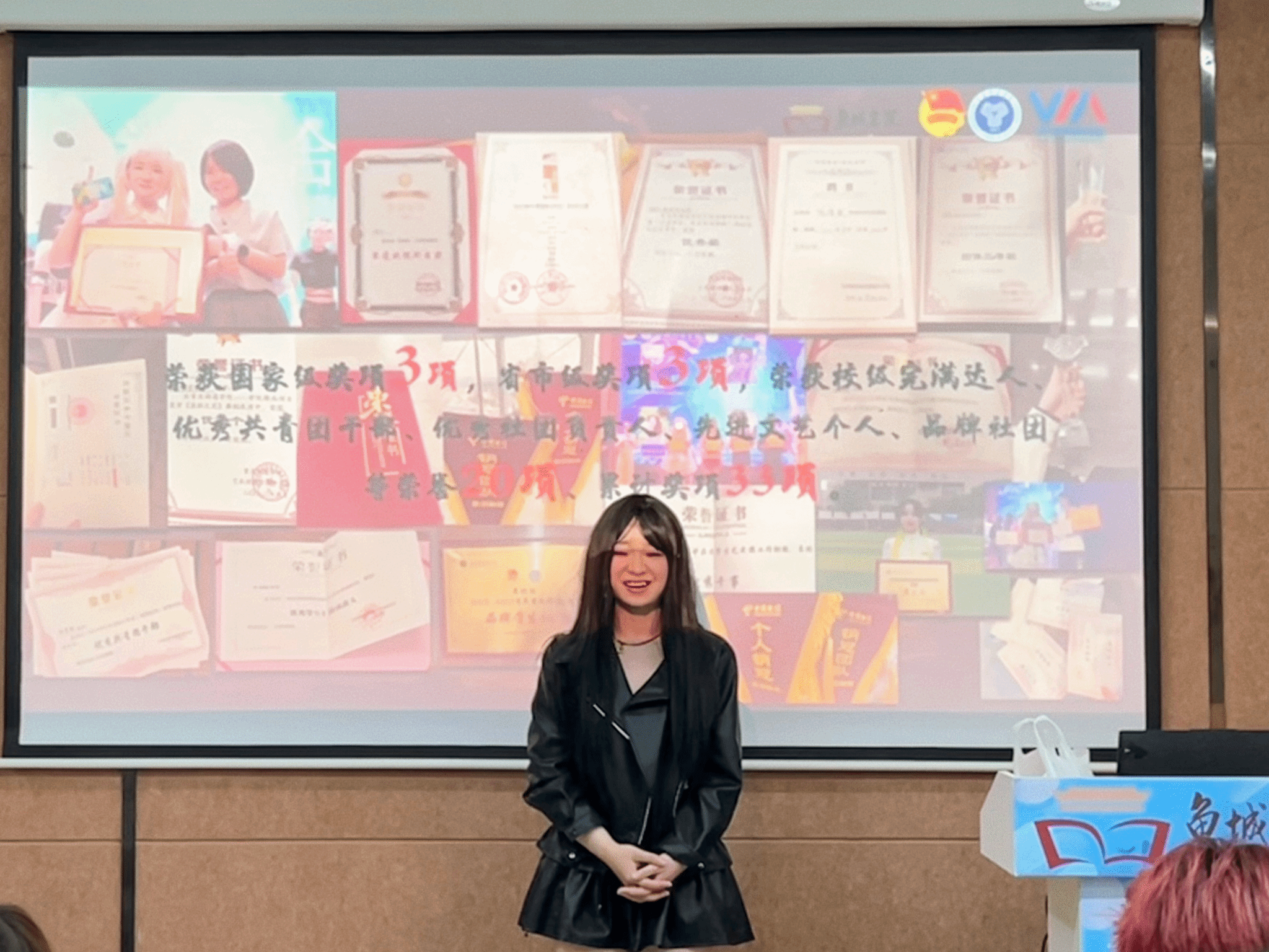 分享会中,陈贵敏同学提到,作为舞蹈狂热爱好者,从进入校园伊始就积极参与各类校园舞蹈活动和演讲比赛,在不断尝试的过程中首次接触宅舞,也因此打开舞蹈的全新方式。越来越多的经历让她变得自信,获得更多机会参与舞蹈大赛与优秀的人同台竞技。无论是在校园啦啦操比赛还是在第九届名角杯戏剧节中,都有她的身影。因热爱而坚持,因喜欢而改变,陈贵敏在活动中不断成长热烈绽放。