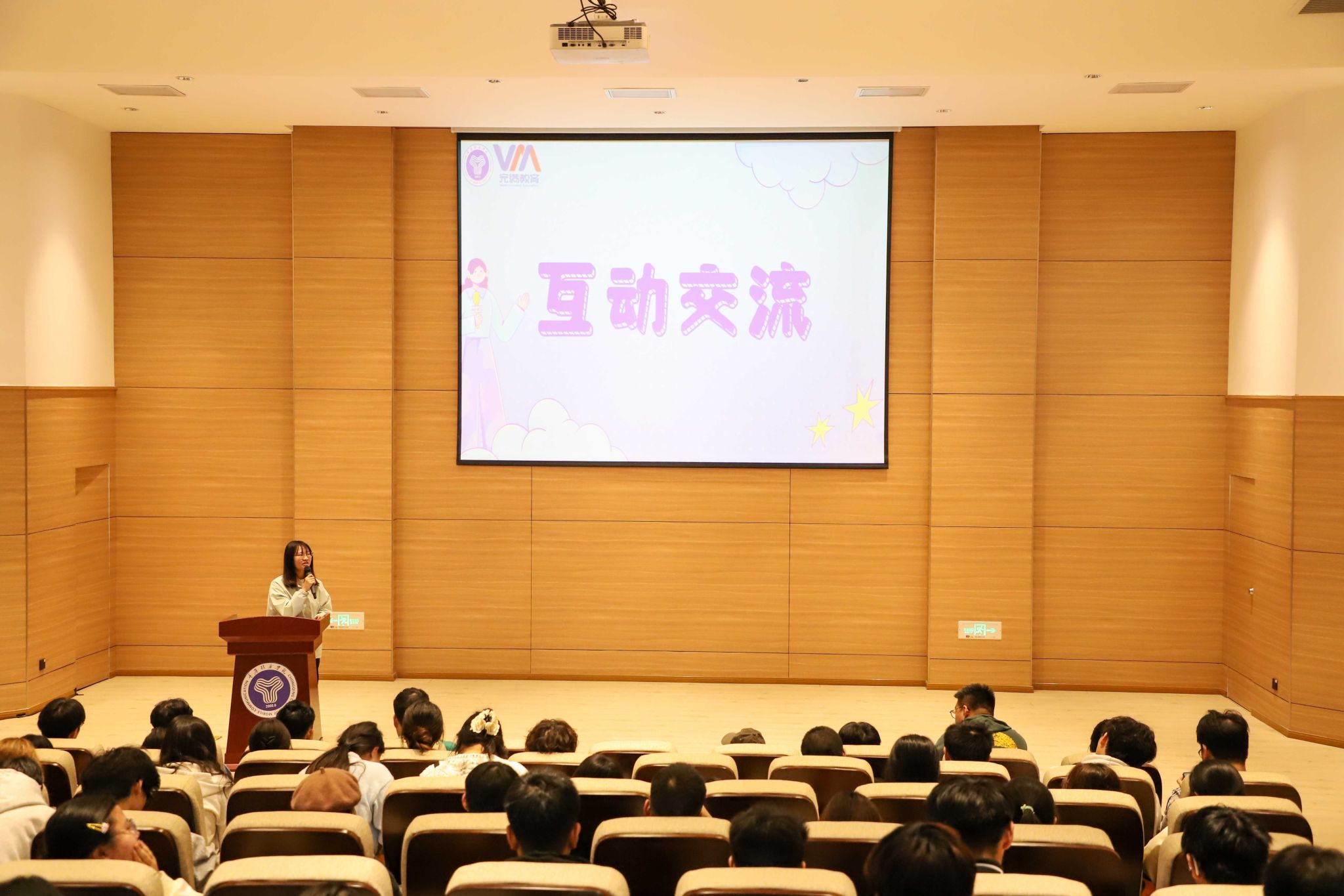 交流互动环节,在场同学积极地提出自己生活、工作中遇到的困惑。姜伊以她丰富的经验和感悟,给每一位有困惑的同学解答,她的话语中流露出对生活、工作的无限热爱,以及对团队合作价值的深刻认识,同学们都被她的热情所感染。最后姜伊向各位同学提出寄语:完满教育的平台十分广阔,希望各位同学在今后都能够成为自己的山,在完满教育的平台上去寻找自己的海。