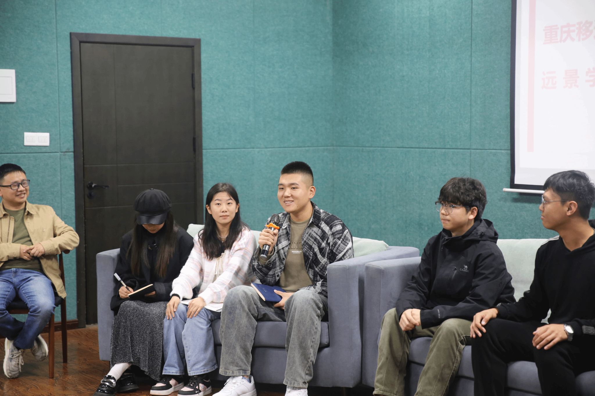 下午四时许,一行人来到爱莲书院多功能影音室,同远景学院优秀学生代表开展“齐心创远景·聚力拓未来”交流座谈会。三名优秀的远景学子从自身角度出发分享了在远景学院的学习成长经历和取得的丰硕收获以及相关国外研学交流的宝贵经验。用最真实的故事和最亲切的话语,鼓励学弟学妹们独立思考、勇于创新、全面发展,不断探索自己的无限可能。最后,来自三校的学生代表一同围坐,对台下同学们的提问进行答疑解惑,向大家分享了自己在学院的个人经历和工作经验,以及来到远景学院合川校区的感受和收获,纷纷表示此行意义深刻,返校之后将总结经验,继续学习。