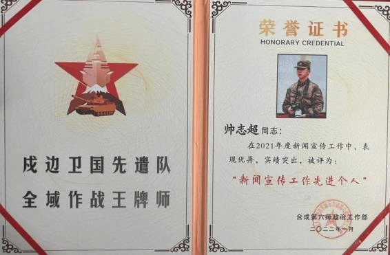 帅志超同学服役的部队地处祖国西部边陲——喀喇昆仑高原,担负着各类战备维稳,边境处突等复杂特殊任务。2020年某月傍晚,他所在部队接到命令,奔赴海拔5300m的生命禁区执行某边境处突击任务。部队遭到了外军蓄谋暴力攻击,在渡河支援途中,帅志超同学服役单位的班长王焯冉同志拼力救助被冲散的战友,战友脱险后王焯冉同志却永久倒在了刺骨的激流中,23岁的班长,用青春和生命完成了党和祖国的神圣使命。那一年,帅志超同学18岁,也是那一年帅志超成为这个光荣队伍中的一员,帅志超说“加入这个光荣的队伍是他最好的成人礼”。边境缺氧,但不缺信念!在严峻的边防斗争中,他们时常面临着生与死的考验,更加懂得边防军人的责任与担当。帅志超同学将他们视为榜样,在他们的事迹感召下,帅志超同学守边护边、不怕牺牲的信念更加坚定!边防军人,心中都有一个信念,那就是“宁将鲜血流尽,不失国土一寸。”
