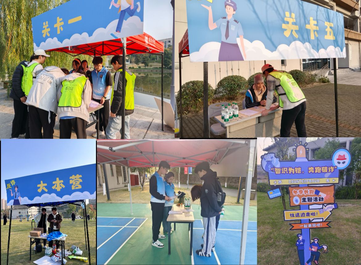 活动中设置了六个关卡,每个关卡都配有益智答题游戏,参与者需要全部完成才能通关。这些游戏不仅考验了同学们的体力,也锻炼了他们的思维能力和反诈骗意识。尽管有些同学在某些关卡遇到了困难,但在互相帮助和鼓励下,大家都顺利完成了挑战。