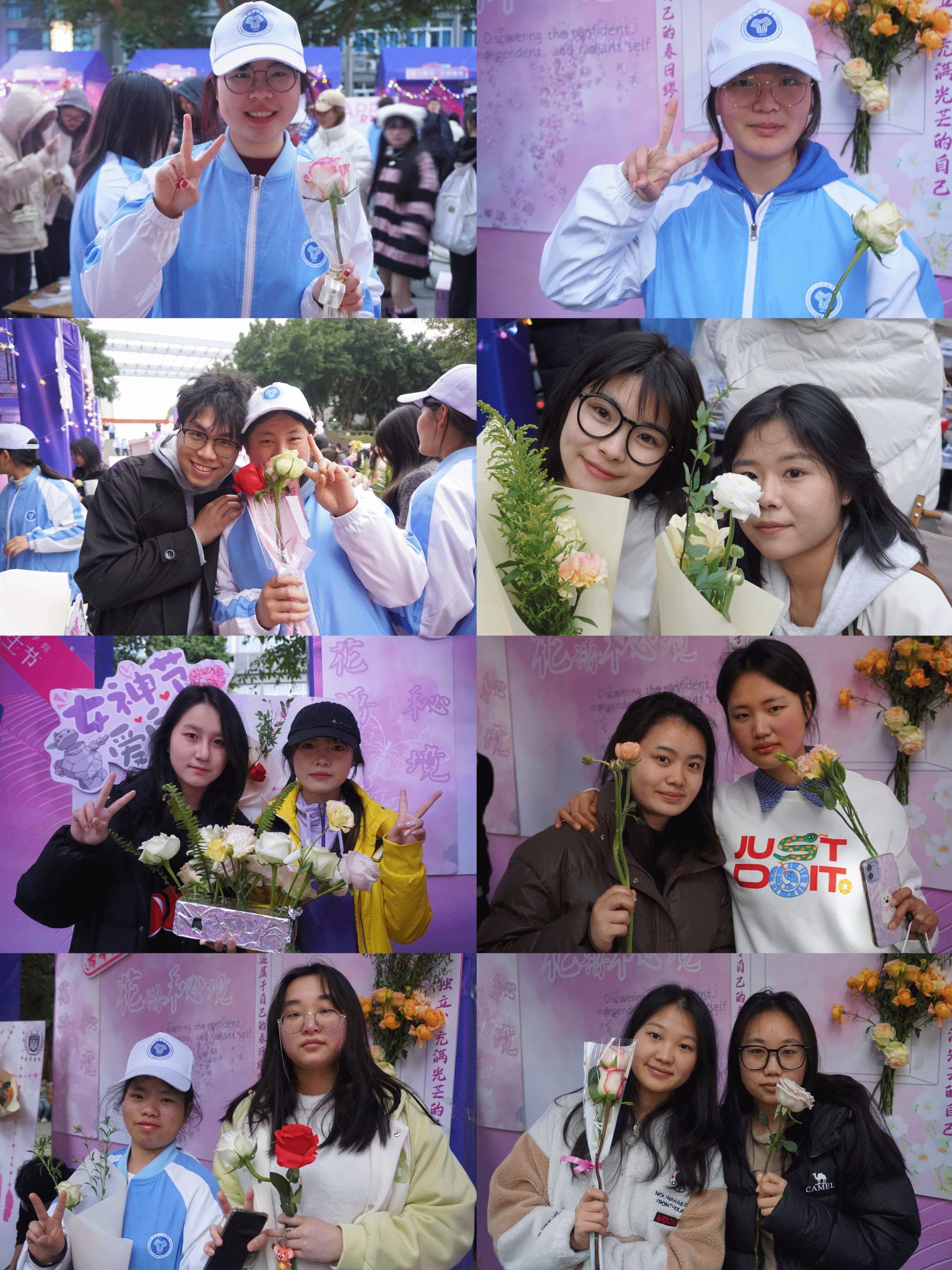 更值得一提的是,现场精心设置的 “春日缪斯” 打卡区,迅速成为记录青春女生风采的热点地标。随着活动的持续推进,打卡区热度不断攀升,吸引着越来越多女同学们前来,感受青春与春日的美好交融。花墙前,女生们洋溢着灿烂的笑容,眼眸中闪烁着独属于此次女生节的欢喜与期待,待工作人员记录下这一个个美好的瞬间,也为大家留下了此次“花语秘境”最美的景致。各色鲜花相互交织,与女生们灿烂的笑容相得益彰,共同勾勒出一幅绝美的春日画卷 。