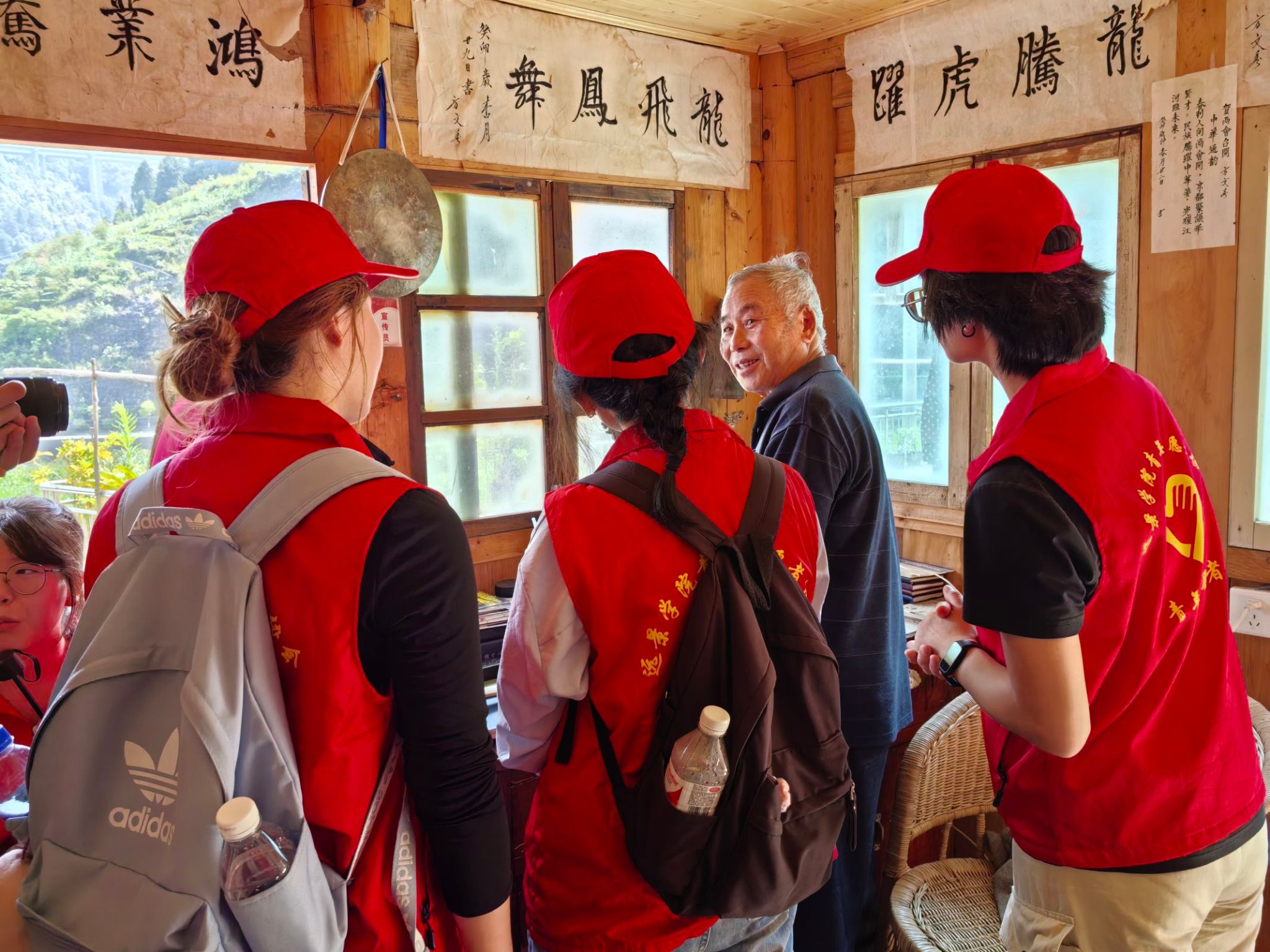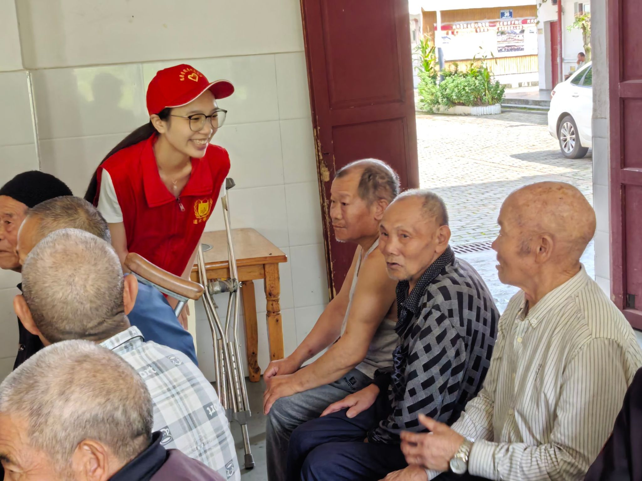 黄鱼村敬老院的屋檐下,《东方红》的旋律唤醒了岁月记忆。实践团的歌声与老人们的合唱交织,手势舞《感恩的心》让皱纹里绽开幸福的花。陪老人唠家常,听他们讲过去的故事,牌桌上的欢声笑语,是青春与暮年的温柔相拥。老党员方文秀的家中,他设计的大桥仍在造福乡邻,退休后写的快板山歌里,满是对生活的热爱。“年轻人要接好班”的嘱托,是跨越代际的期许,让青春的责任与担当愈发清晰。