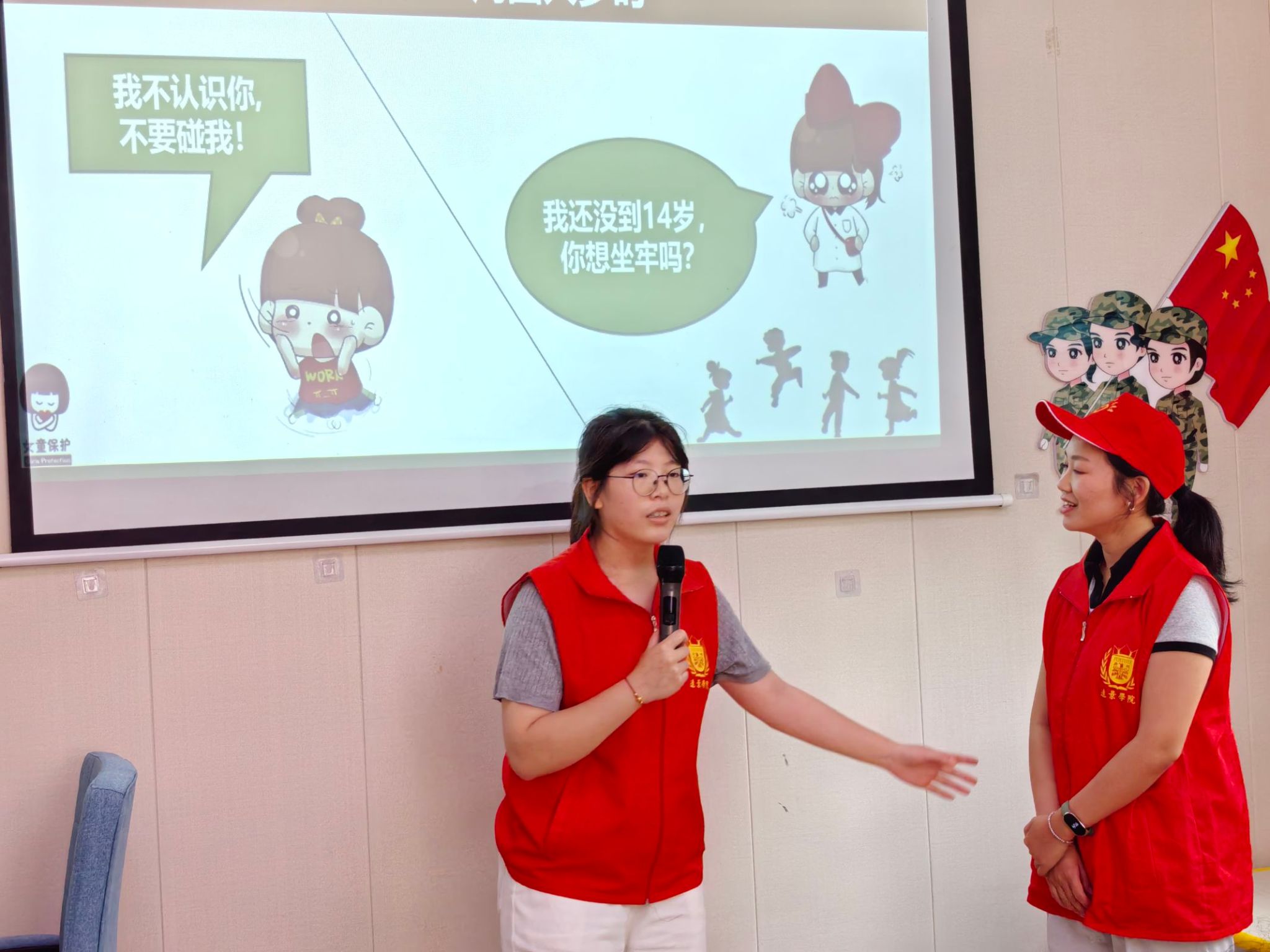 “童伴之家”的课堂上,安全教育课像一场“魔法”。实践团用动画和情景模拟,教孩子们守护身体的“小秘密”,“背心内裤遮盖的地方不能碰”的叮嘱,像一把小伞,为30余名留守儿童撑起安全的天空。陪伴时的欢笑,礼物里的心意,让“服务不缺位”的承诺,化作孩子们脸上灿烂的笑容。