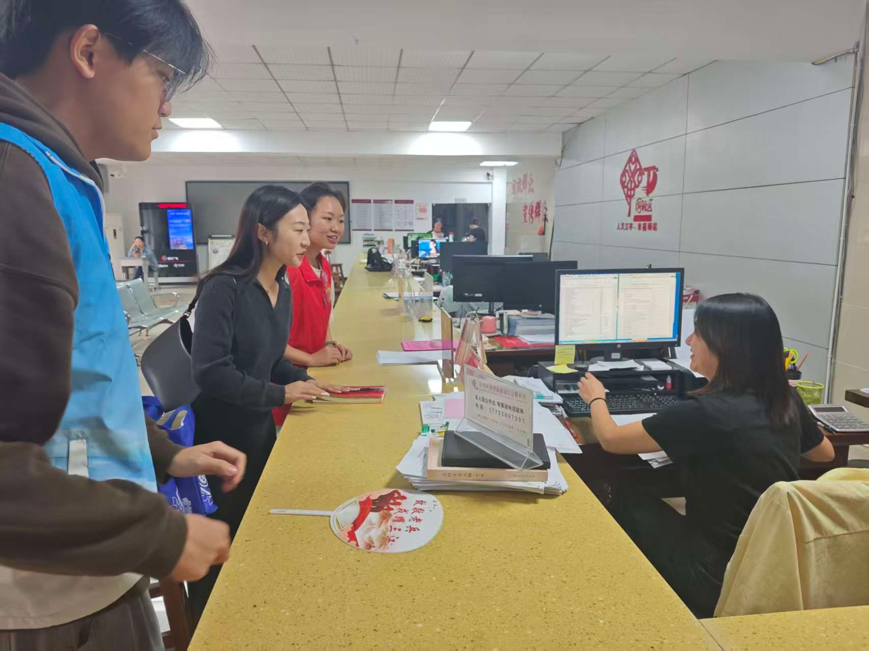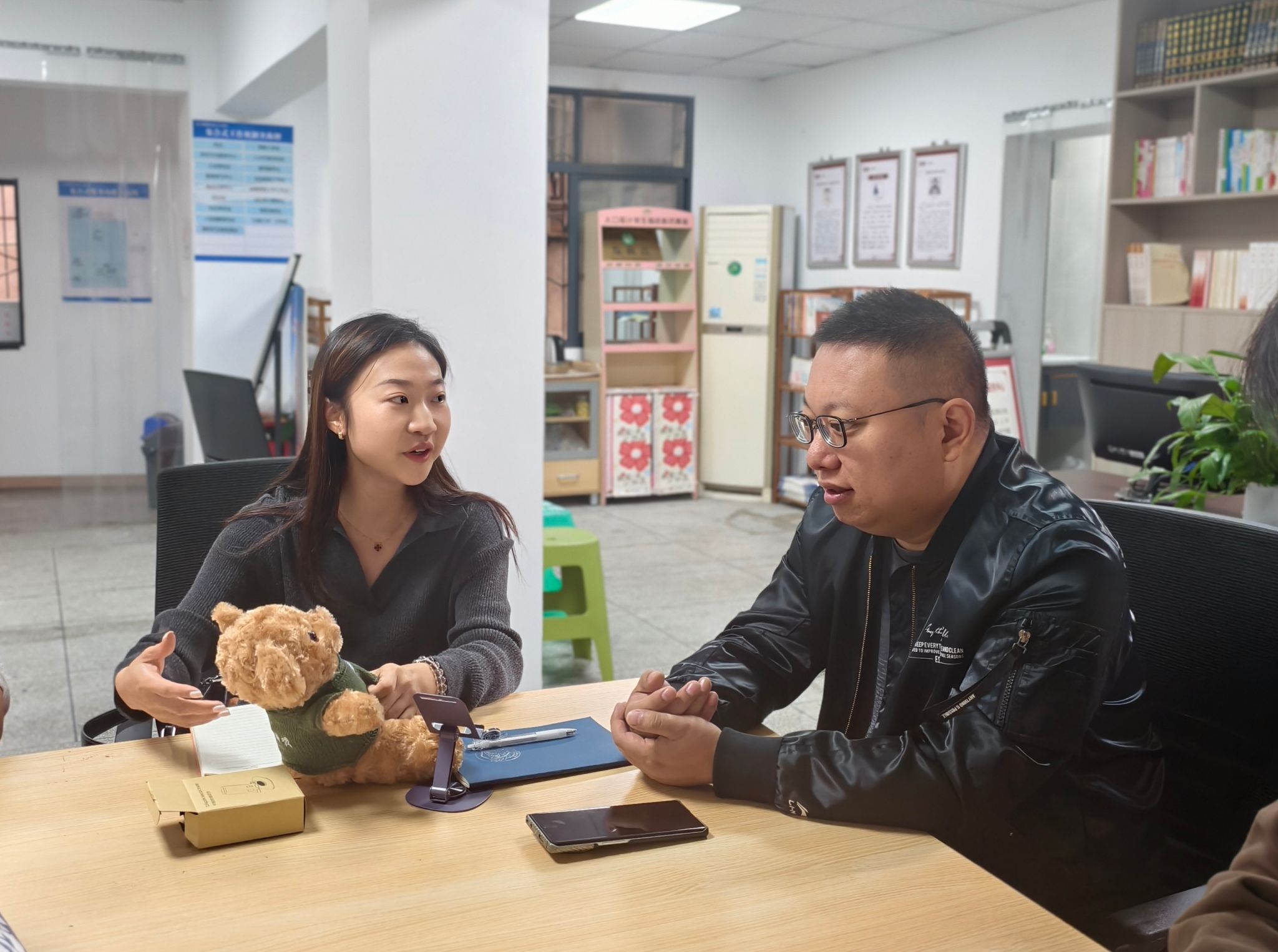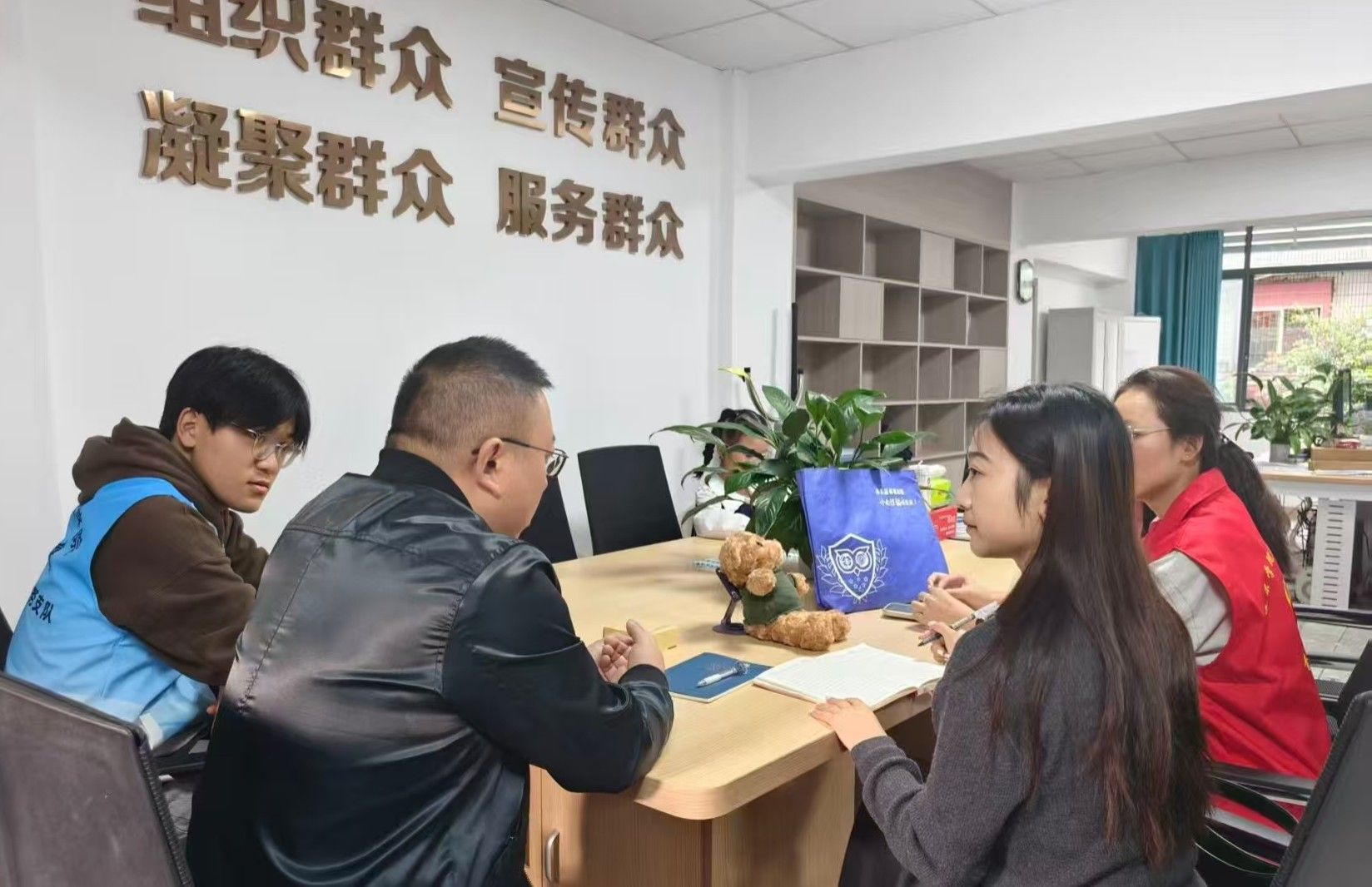 在凉亭子社区,师生受到了社区团支部黄书记的热情接待。会谈伊始,杨斌誉老师便主动向黄书记重点介绍了学院青协的特色品牌项目——“猫头鹰”防诈骗志愿服务项目。她详细阐述了项目通过情景剧、知识讲座、反诈手册等形式帮助社区居民,尤其是老年人守好“钱袋子”的初衷与成效。