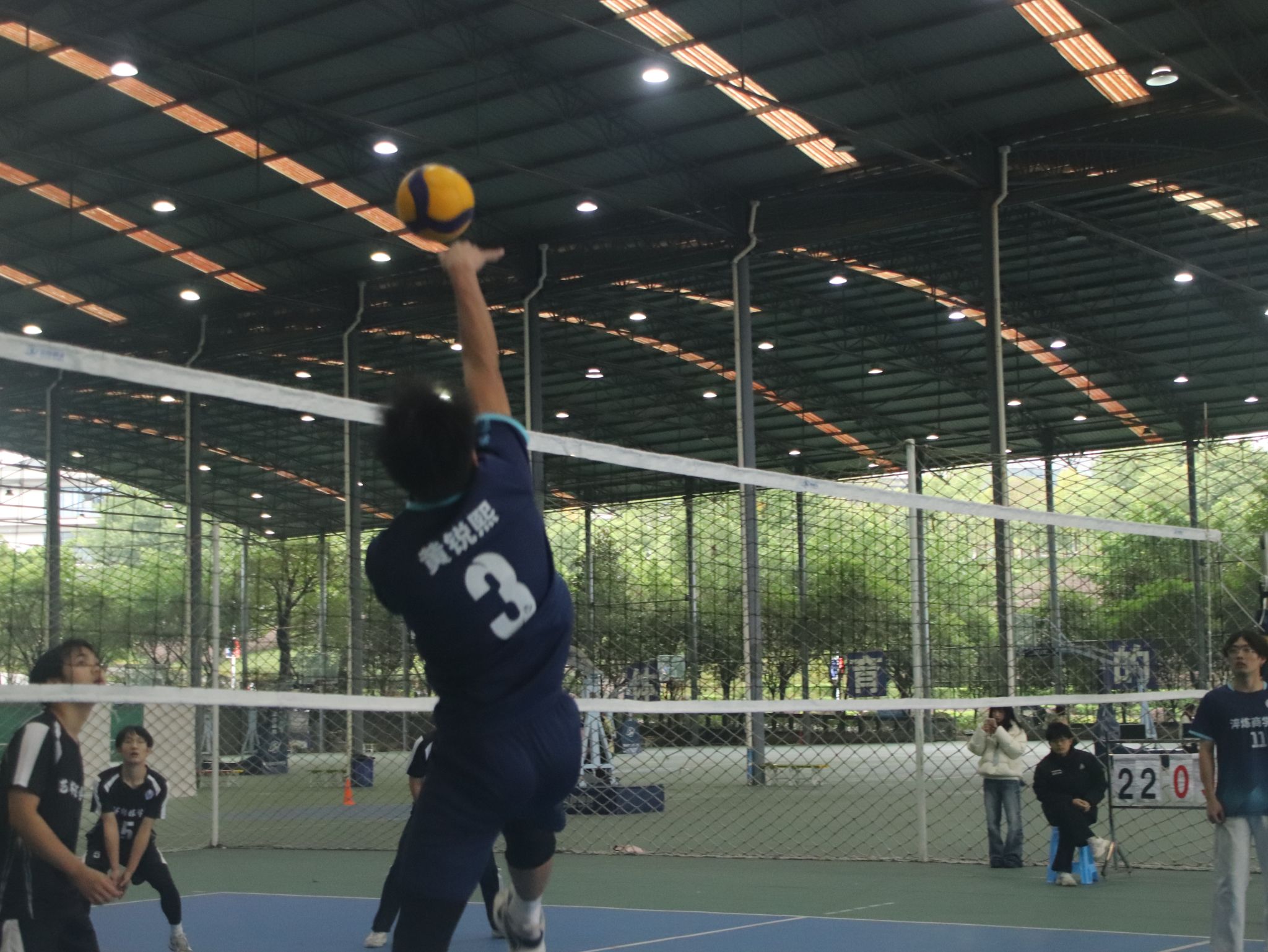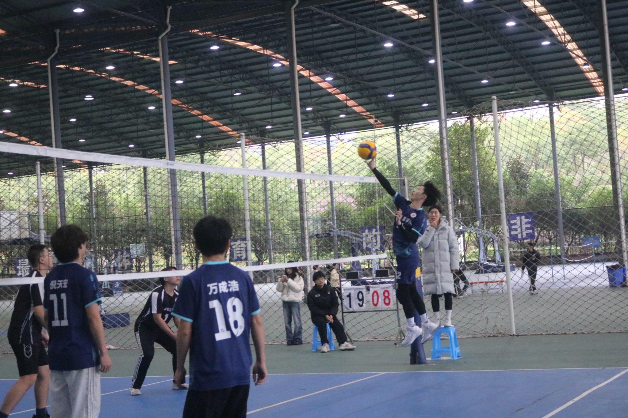 在决赛中,淬炼男排健儿们更是展现出了惊人的实力。赛场上,男排双方激战正酣,比分如影随形,紧咬不放。每一次发球都似利箭出鞘,每一回接球都若泰山稳扛,每一番扣杀都像蛟龙破浪。那比分牌上的数字交替上升,似在进行一场无声的赛跑。一球方落,新球又起,加球之际,更是紧张到令人窒息,队员们眼神如炬,死死盯着排球的轨迹,肌肉紧绷,仿佛下一秒就要爆发出无尽的力量,一心只为在这胶着的战局中撕开一道胜利的口子,让胜利的天平倾向己方。他们的每一分都充满了悬念和紧张。比赛进行到关键时刻,淬炼男排健儿们毫不畏惧,他们以惊人的毅力和团队精神,一次次将比赛的局势扭转。尽管最后遗憾失利,获得了亚军的成绩,但他们却赢得了全场的喝彩和掌声。