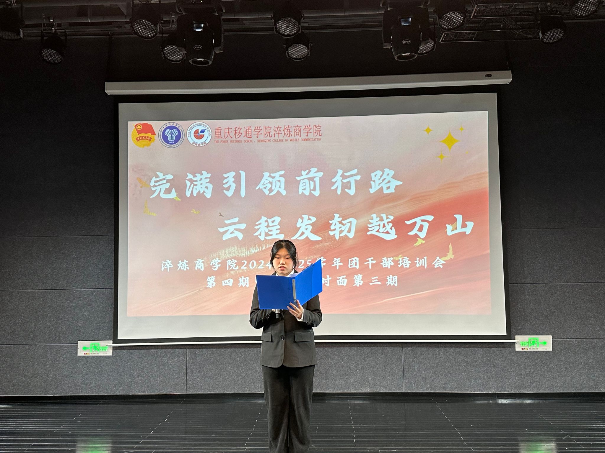 班团干部作为团组织的核心力量,肩负着引领青年、服务青年的重要使命。在新时代背景下,团学工作面临着新的机遇与挑战,唯有不断学习、思考、实践,方能适应时代需求,做好青年工作。本次团干部培训会,正是基于此目的而开展,旨在通过系统的培训与交流,让班团干部们在学思悟行中坚定信念,在砥砺奋进中提升自我。此次活动以增强班团干部团务知识与业务能力为目标,搭建交流平台,发挥榜样力量,推动团学工作再上新台阶。淬炼商学院团总支组织部于12月11日在六度空间黑匣子剧场举办了本学年第四期班团干部培训会第四期暨学长面对面第三期活动。