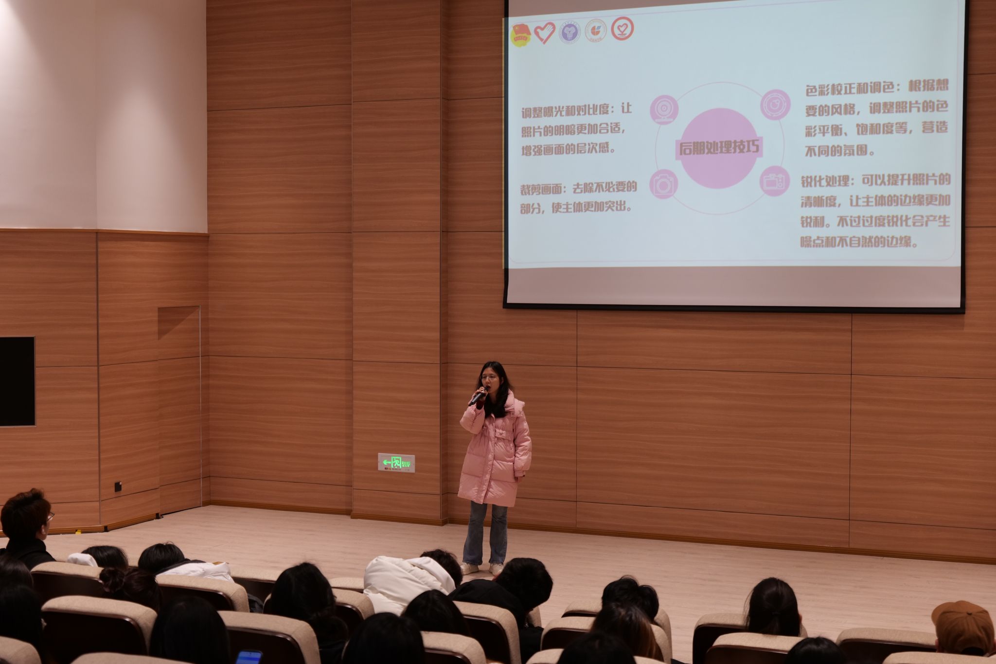 此次培训由淬炼商学院青年志愿者协会执行主席杨敬婷主讲。培训伊始,主讲人阐述了单反相机的基本结构,包括镜头、机身、快门、光圈等部件的功能与作用,使学员们对单反相机有了初步的整体认知。同时,主讲人深入浅出地讲解了摄影的技能,让学员们掌握了摄影的核心知识要点。