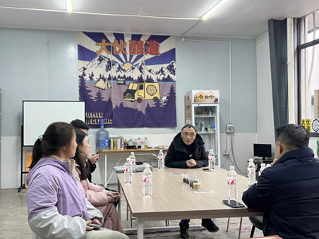 紧接着,项目负责人董道进老师对现阶段实战项目的推进情况予以了详尽汇报,并与罗飞总经理就未来项目规划展开深入交流。后续工作将围绕三个“推进”重点展开:一是推进与三创赛的有机融合,实现资源整合与优势互补;二是推进线下渠道的搭建与促销活动的开展,拓展市场份额,提升产品知名度;三是推进项目组内部模拟财务规范化体系建设,确保财务运作的规范性与高效性,为项目的稳健发展筑牢根基。