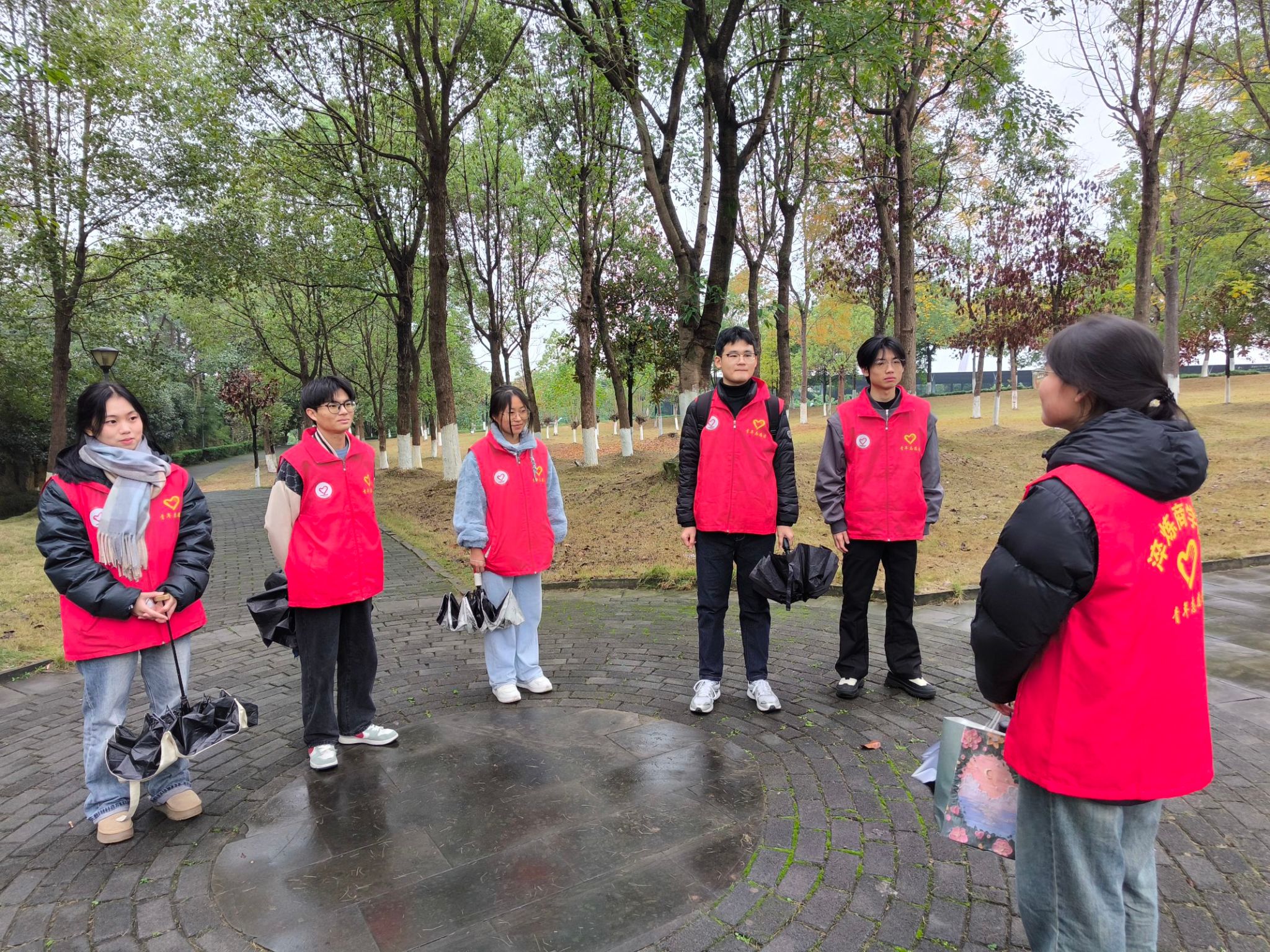 活动当日,全体志愿者统一身着红马甲,在规定时间准时于北校门口集结完毕。现场秩序井然,志愿者们齐声呼喊活动口号,展现出饱满的精神风貌。支队长站在队伍前方,手持活动资料,对具体流程与各项要求进行了详尽且细致的讲解,并将志愿者合理划分为两队,以确保活动高效有序开展。