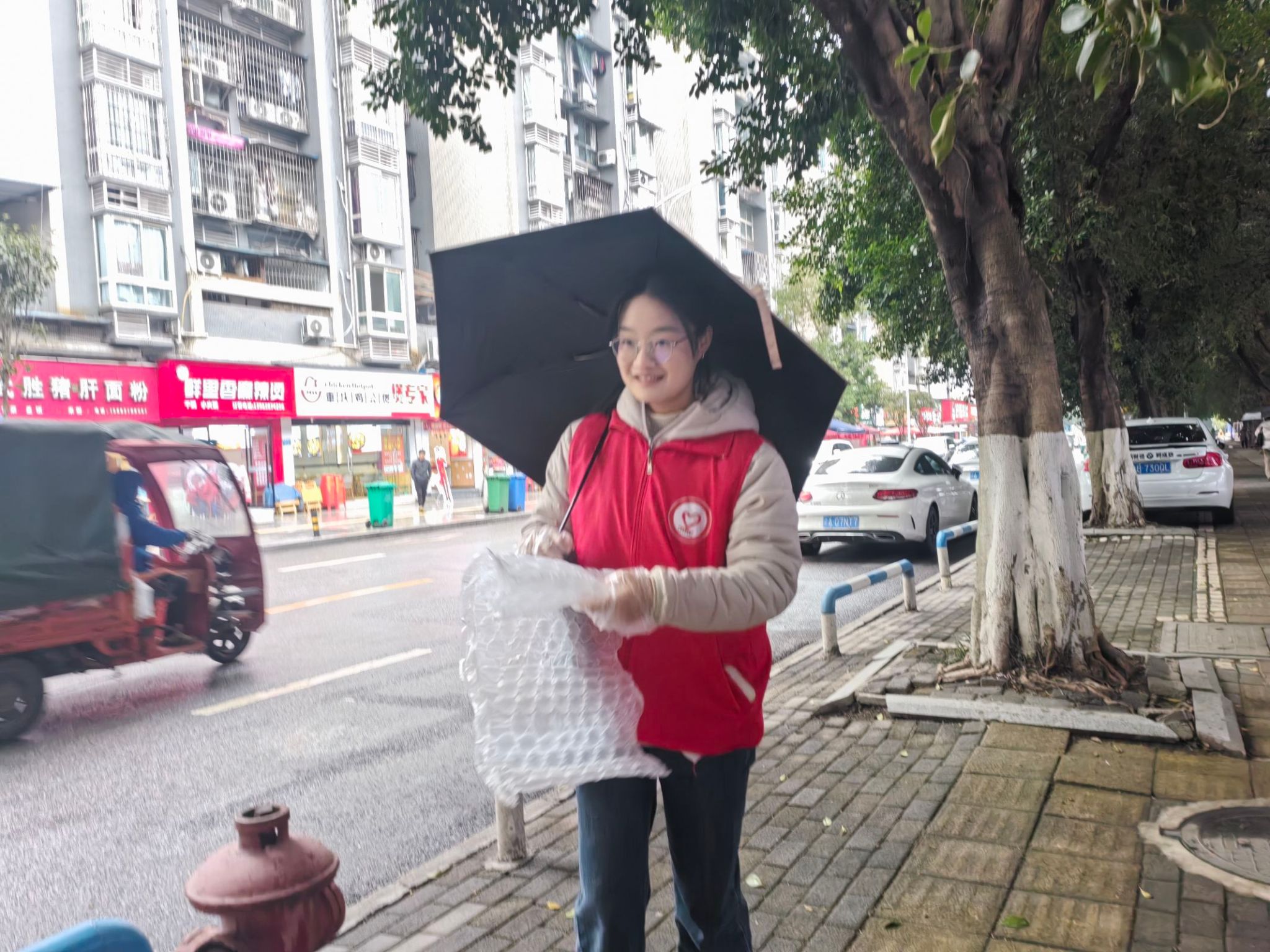 淬炼商学院青年志愿者协会“向阳而生”助残筑梦志愿服务专项支队于12月12日开展了一场主题为“清障盲道·爱筑通途”的志愿活动,在重庆移通学院周边街道顺利开展。志愿者们用双手为视障群体清扫出一条充满希望与关怀的光明之路。