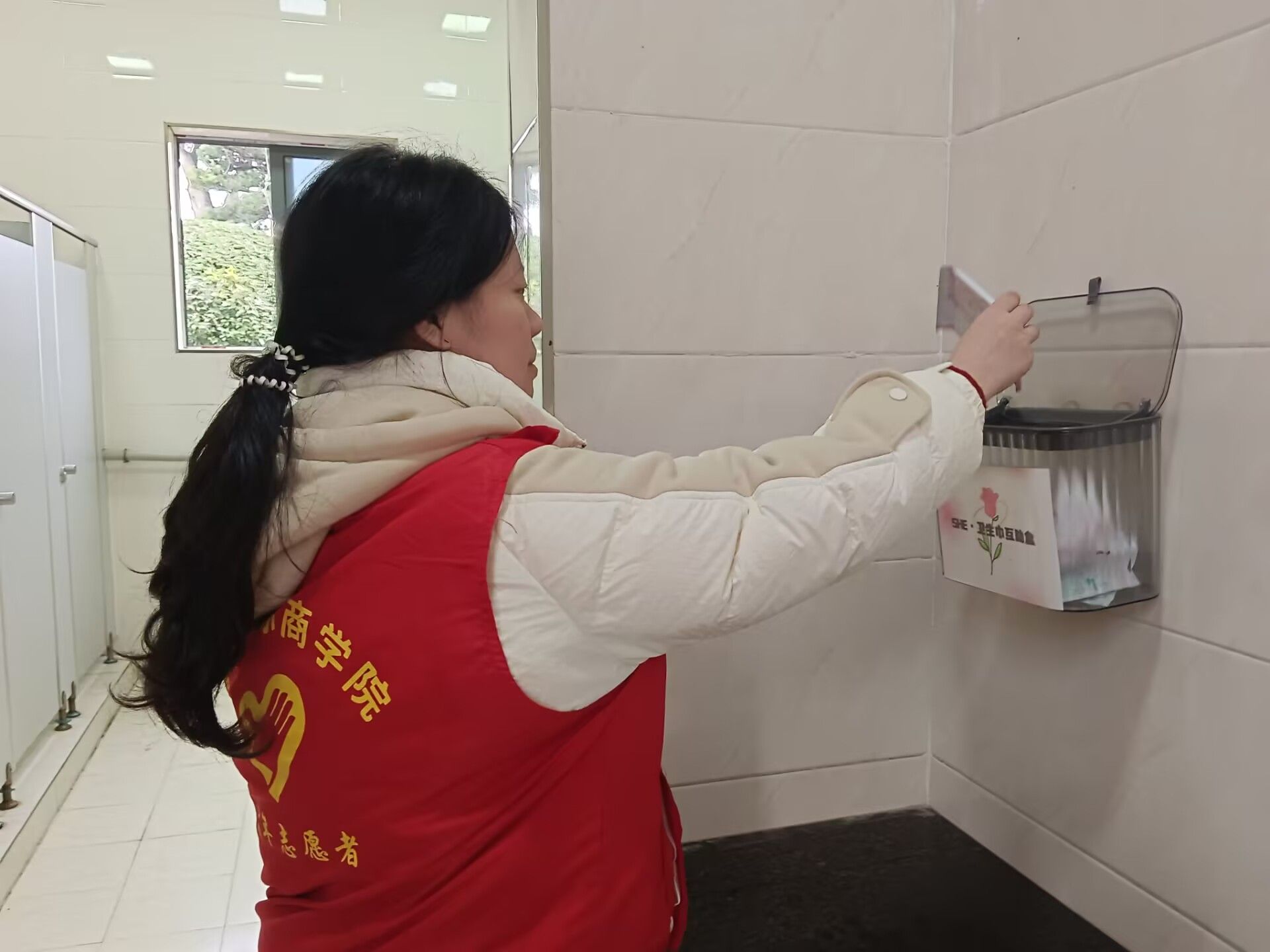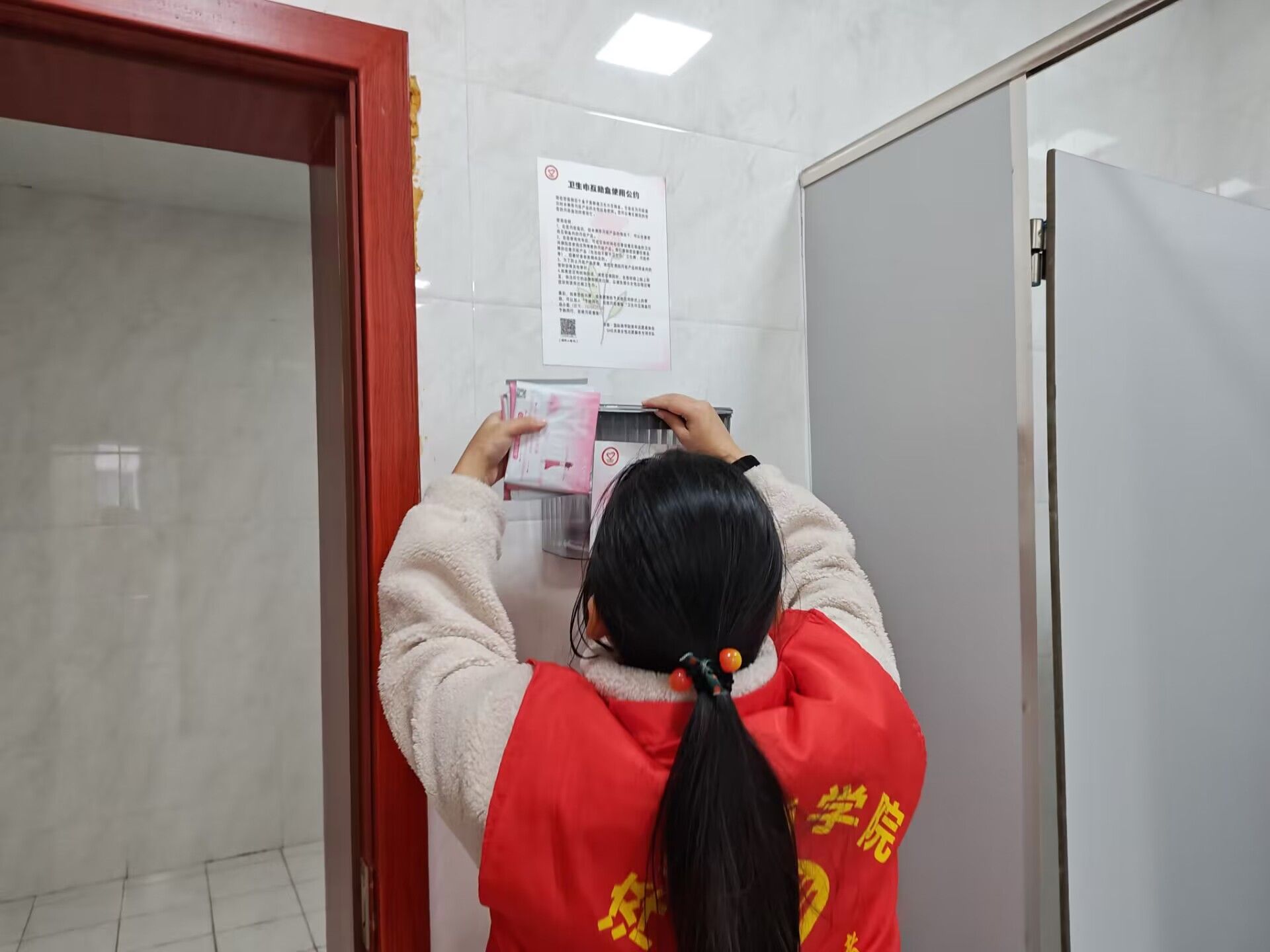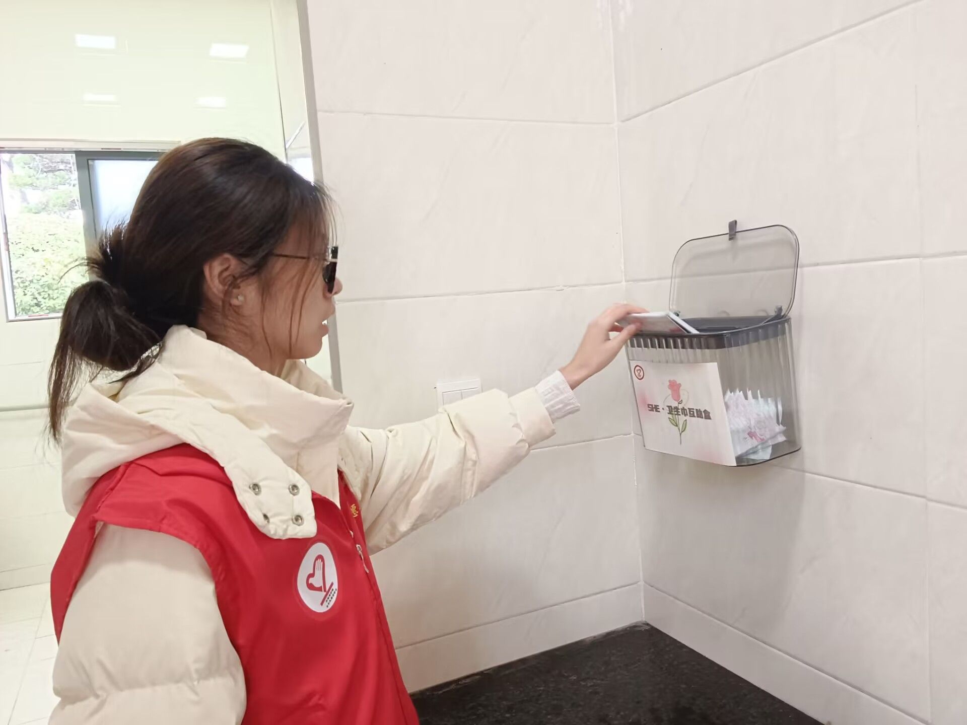 月经是女性特有的正常生理现象,但它的突然到访总会让女生们因缺乏及时的卫生用品感到尴尬和不安。淬炼商学院青年志愿者协会“SHE”关爱女性志愿服务专项支队于2024年12月12日在重庆移通学院北校区开展卫生巾投放活动,为应对女性在特殊时期的突发情况做好后援准备。