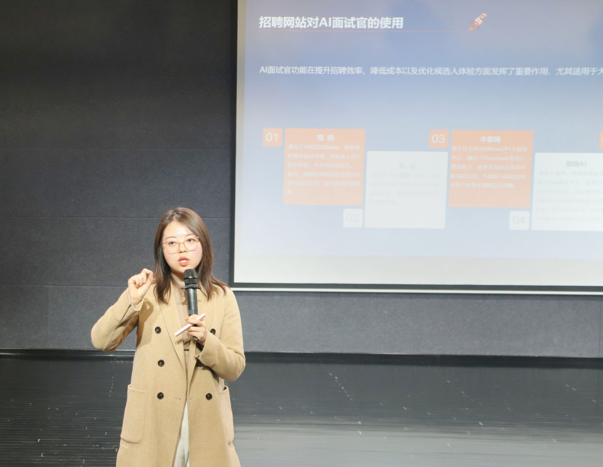 面对AI技术给求职带来的变革,黄念老师从简历撰写与优化两个方面入手,全方位展示了AI在求职各环节的应用。同学们可以利用AI工具精准匹配岗位关键词,在求职准备阶段,通过AI模拟面试,提升个人应变能力;在岗位推荐与投递时,借助AI筛选合适岗位,精准把握求职方向。同时黄念老师鼓励同学们积极拥抱新技术,将AIGC融入求职过程,提升求职效率与成功率,实现面试“突围”。