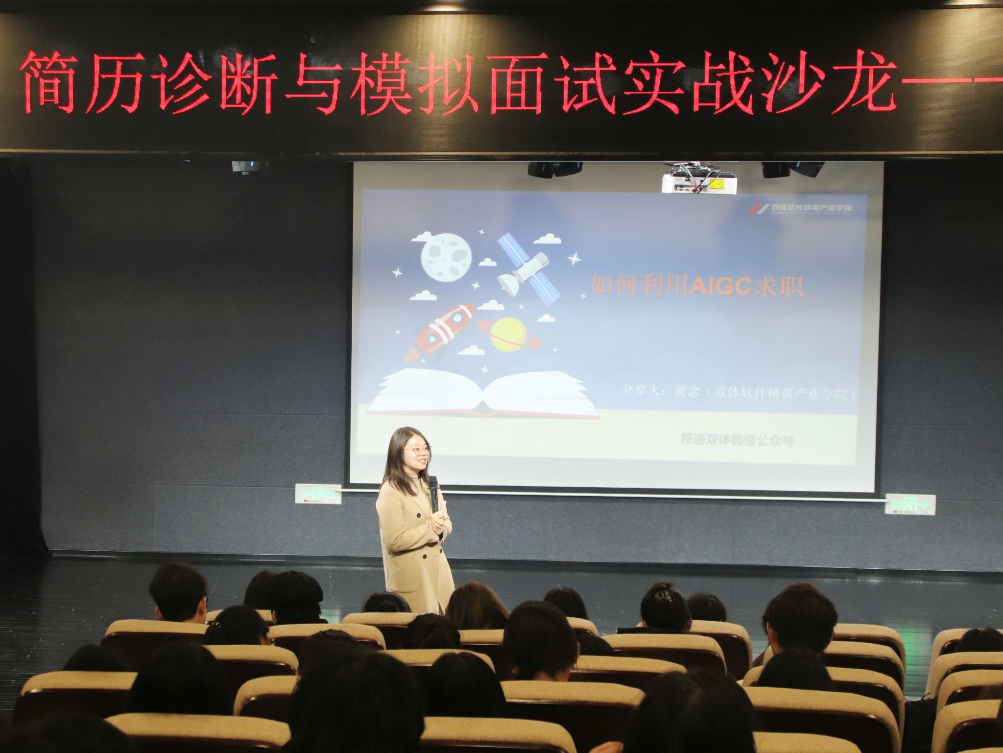 在科技飞速发展的AI时代,求职领域正经历着深刻变革,AI简历筛选、面试算法等技术已成为求职者必须跨越的新门槛。为助力同学们掌握AI时代下的求职技巧,提升就业竞争力。由就业创业指导与服务中心主办,淬炼商学院承办的 “AI时代求职突围:简历诊断与模拟面试实战沙龙——淬炼商学院第261期就业沙龙活动”于2025年3月12日16:00在六度空间黑匣子剧场成功举办。本次活动有幸邀请到双体软件精英产业学院、拥有7年HR工作经验的黄念老师作为主讲人,为同学们深度剖析AI时代下的求职要点。