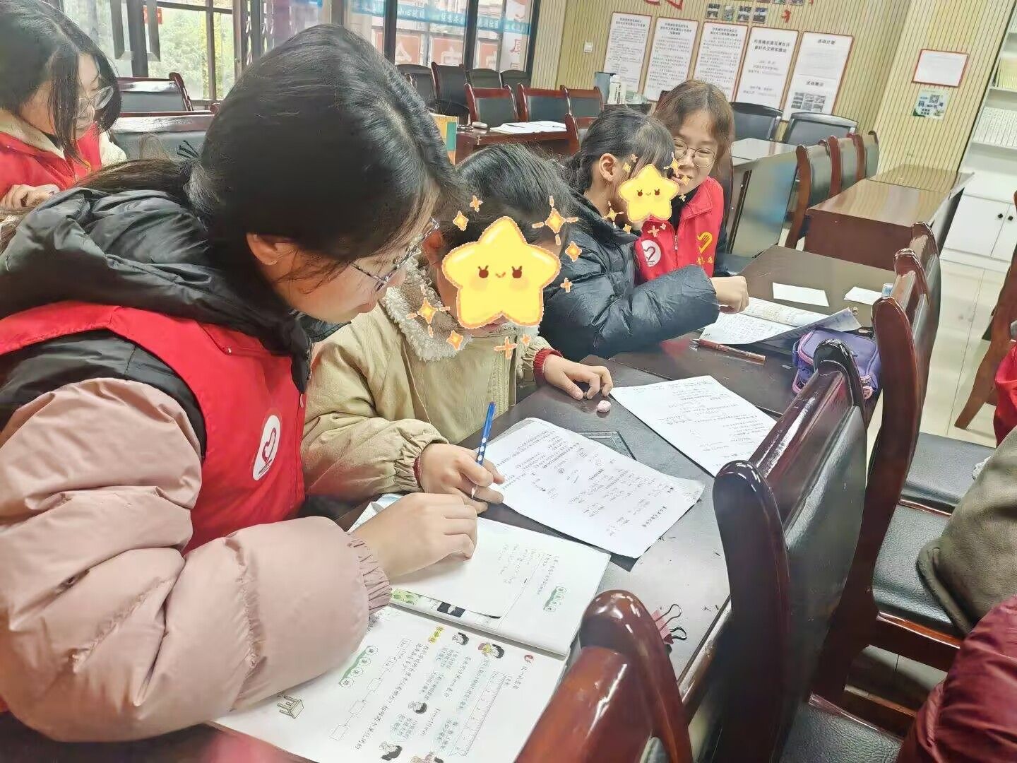 主题活动结束后,志愿者团队开设“周末加油站”,针对小朋友们在作业中遇到的难题,志愿者们耐心地进行辅导。他们认真查看每一道题目,用通俗易懂的方式为孩子们答疑解惑,引导他们找到解题思路,无论是数学的复杂运算,还是语文的阅读理解,志愿者们都能深入浅出地讲解,帮助孩子们克服学习上的困难。在志愿者们的帮助下,孩子们的作业难题逐渐被攻克,这一环节的设置,不仅让小朋友们感受到了学习的乐趣,更为他们的成长之路增添了温暖的陪伴。