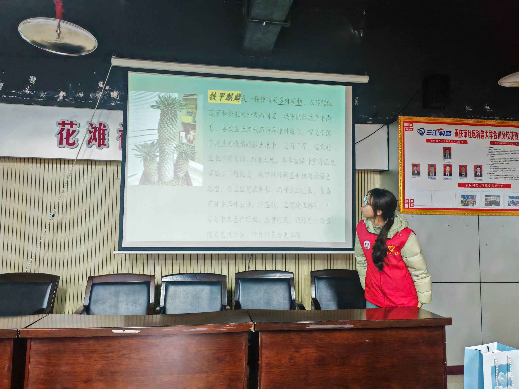 活动伊始,志愿者以趣味植物科普课件为载体,通过图文演示、动态视频与互动问答,向儿童讲解种子萌发、光合作用等自然现象,以丰富的视觉效果和简洁易懂的表述,将植物的世界生动地展现在小朋友们面前。从种子的萌发过程,到植物生长所需的阳光、水分和土壤,再到不同植物的独特形态与作用,每一个知识点都引发了小朋友们的浓厚兴趣,志愿者还结合生活实例,引导孩子们思考植物与人类生存的紧密联系,激发其保护环境的责任感。