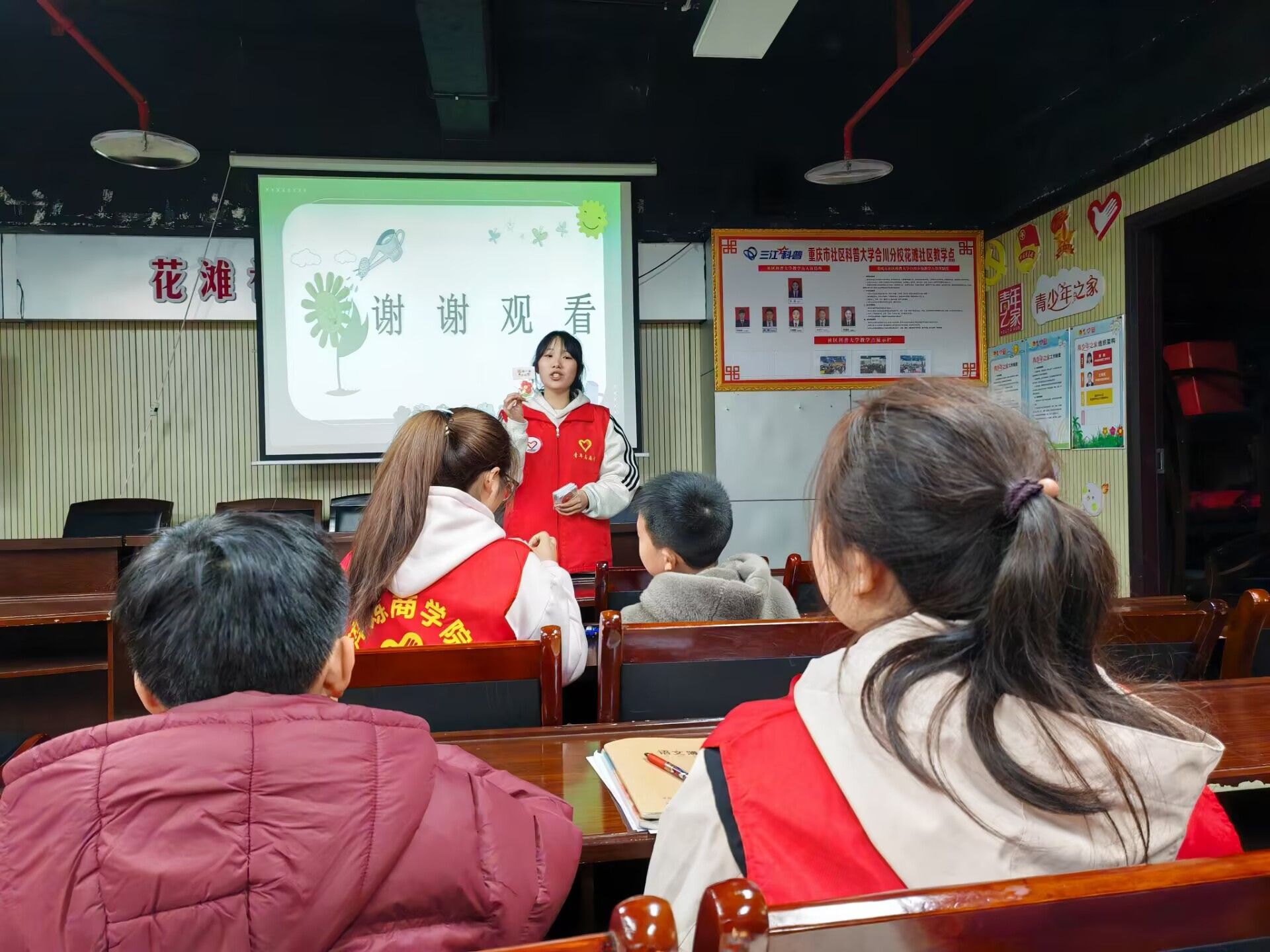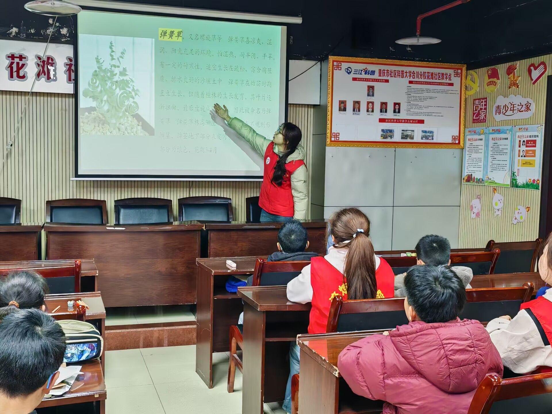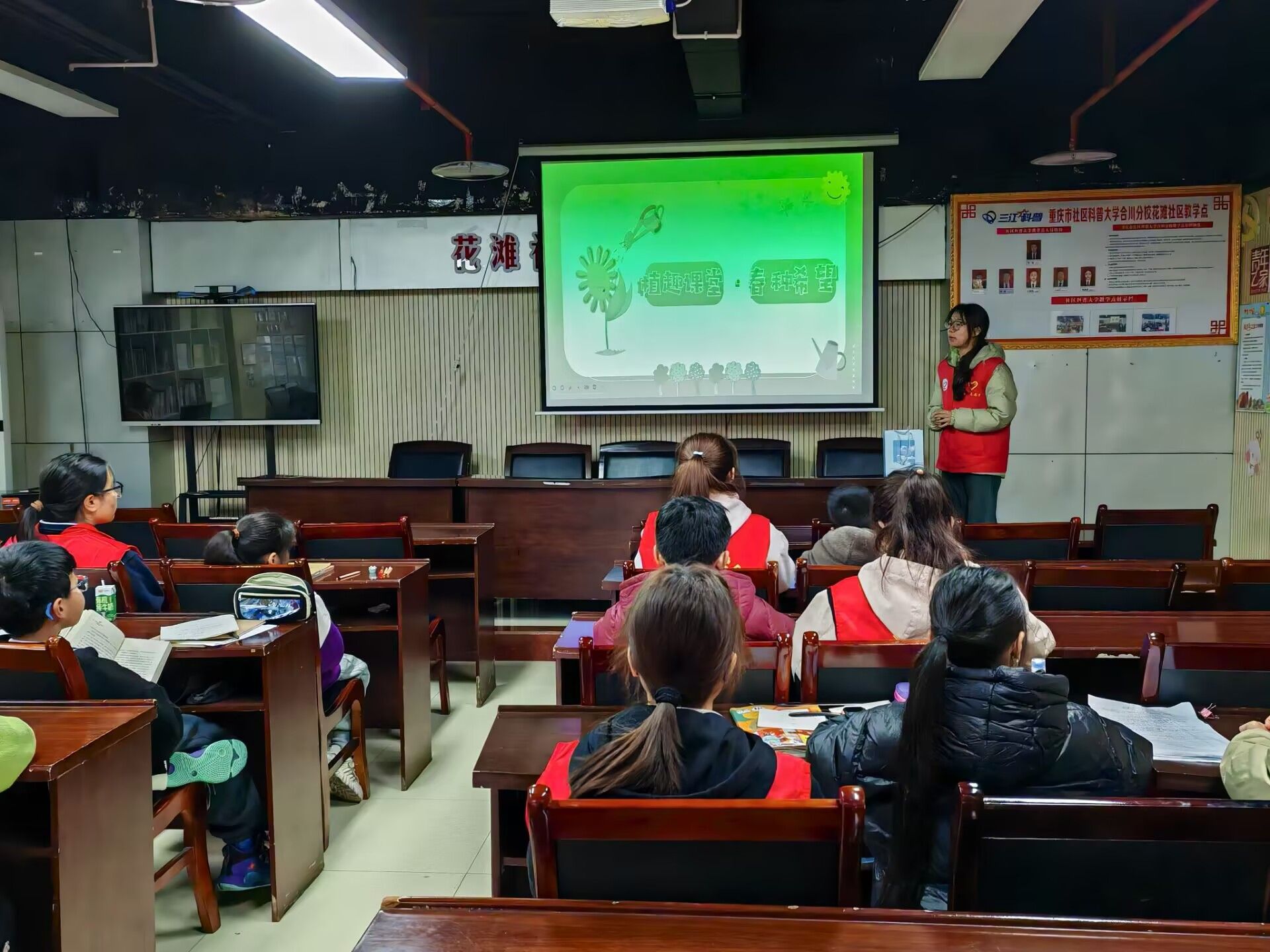 活动当日,支部成员作为志愿者早早来到现场,精心布置场地,准备好PPT,为活动后续开展做好充足的准备。在植物科普环节,志愿者们化身为“自然使者”,用充满趣味的动画小短片为小朋友讲解植物的重要性,让孩子们了解到植物可以组成生活中的很多东西。观看小短片时,孩子们目不转睛,好奇的问题接连不断,现场气氛热烈。接下来,志愿者通过生动的图片为小朋友们介绍了一些有趣的植物,在看到奇怪又有趣的植物图片后小朋友们纷纷露出笑颜,瞪着好奇的大眼睛,聚精会神地聆听着。