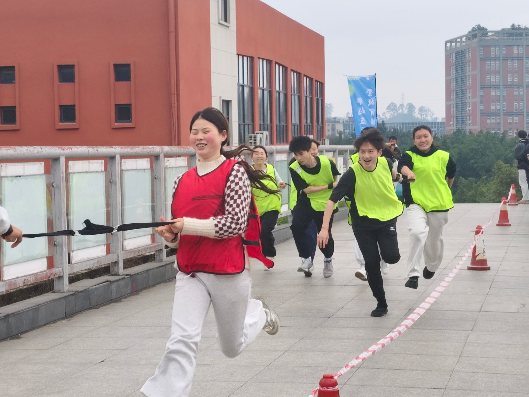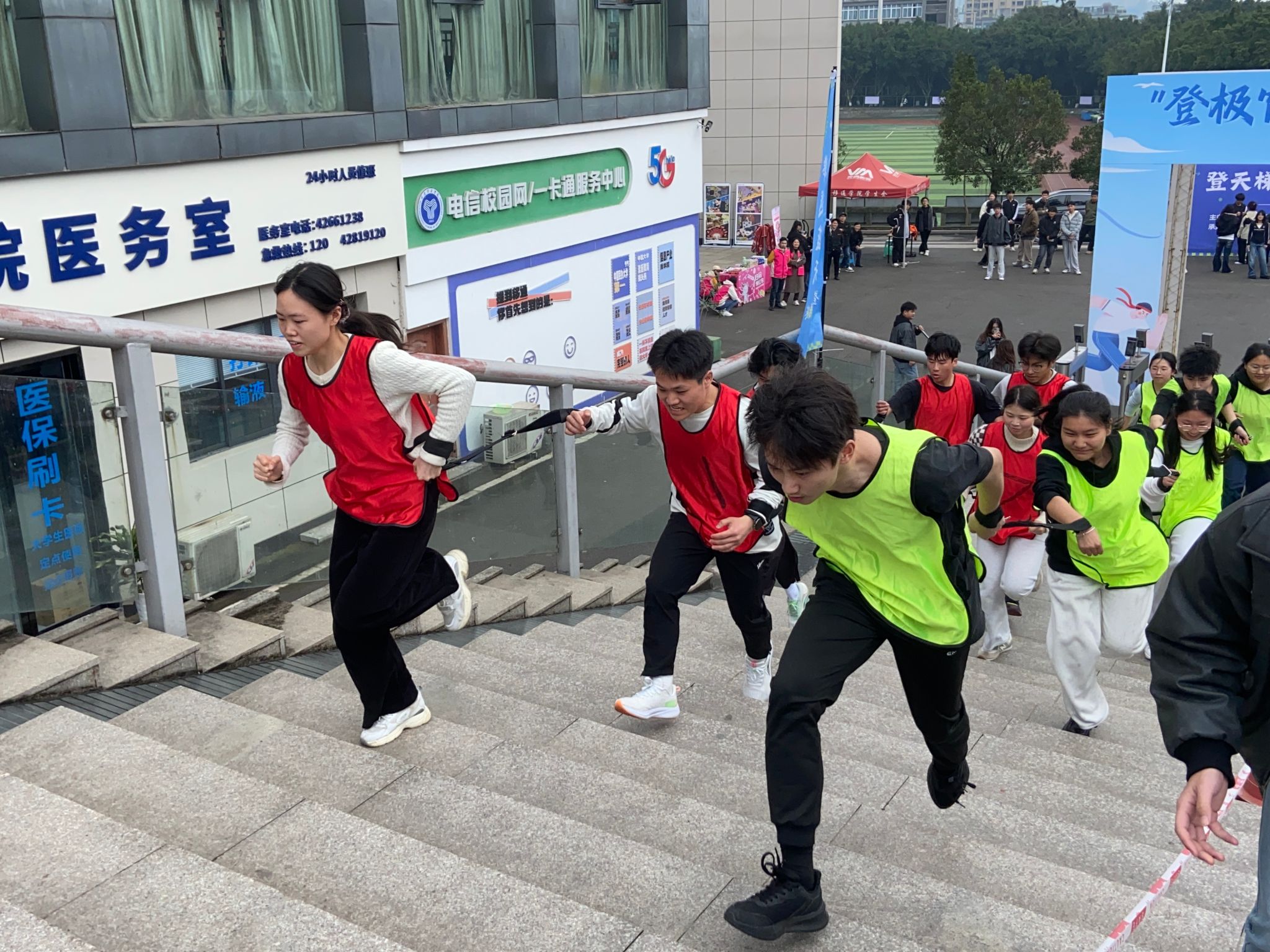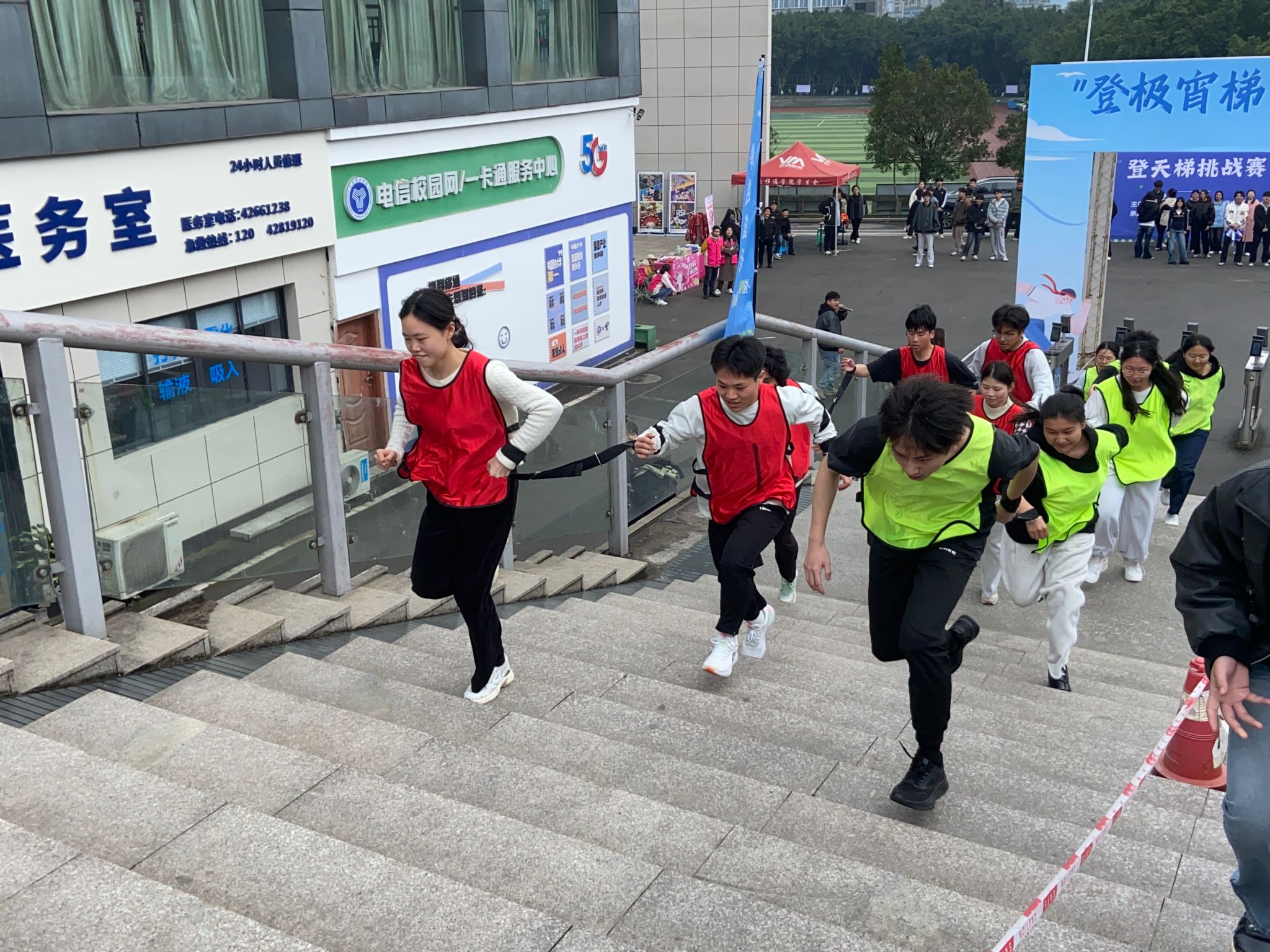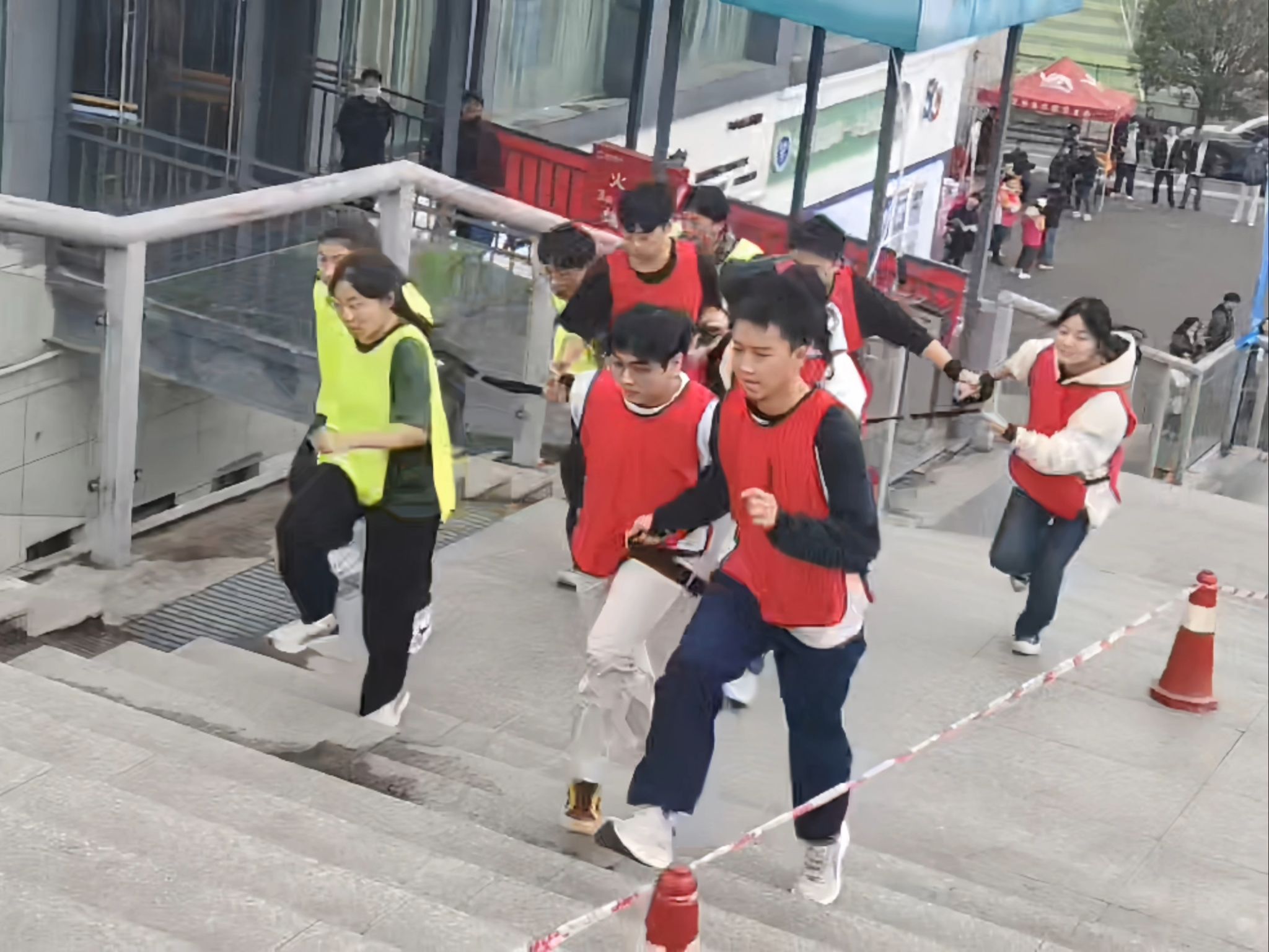 活动伊始,天梯直立而上,象征着挑战的高度与难度,却也激发了学生们无尽的热情与斗志。参赛团队早早地来到现场,他们或摩拳擦掌、跃跃欲试,或三五成群、讨论着攀登策略,整个校园弥漫着一种紧张而兴奋的氛围。现场选手们个个精神抖擞,斗志昂扬。随着发令枪响,他们如离弦之箭般冲向楼梯,你追我赶,互不相让。各个团队依次踏上天梯,开始了他们的挑战之旅。在团队比赛中,队员们默契配合,互相鼓励,将团队精神发挥得淋漓尽致,现场观众也被他们的精彩表现所感染,眼睛紧紧盯着赛场,口中爆发出震耳欲聋的欢呼声与呐喊声。
