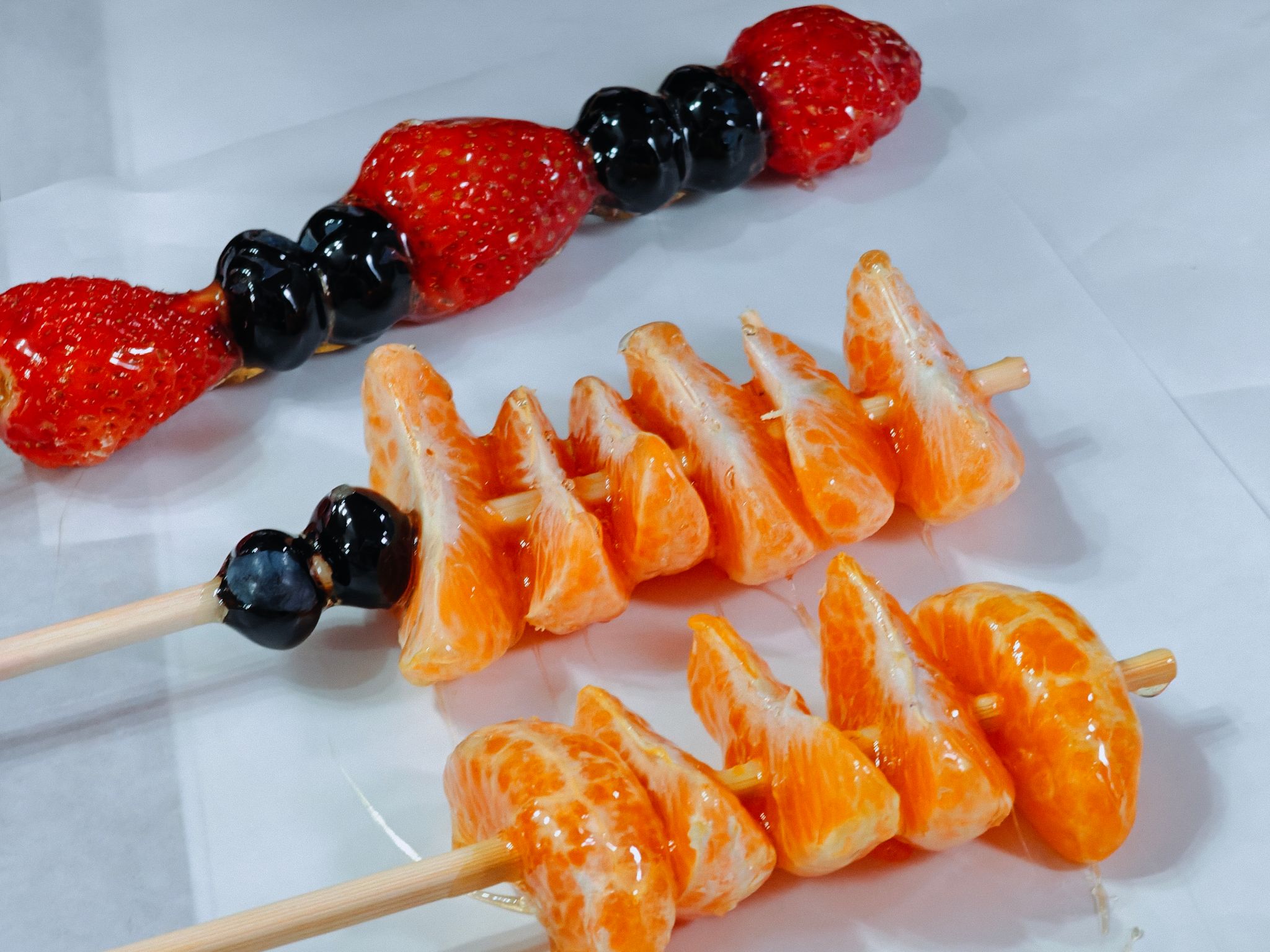 为了充分利用材料,避免浪费,班委们还精心准备了新鲜水果。同学们将水果串成串,裹上剩余的糖浆,制作成晶莹剔透的冰糖葫芦,酸甜的果香与甜蜜的糖浆完美融合。这一环节不仅巧妙地利用了剩余材料,更让同学们体会到了传统美食的制作乐趣和传统文化的多样性。