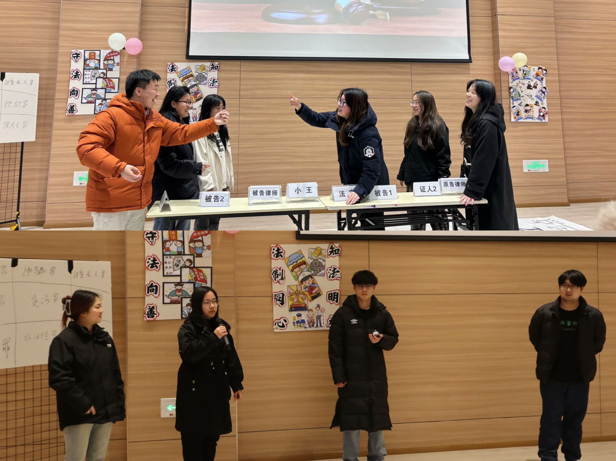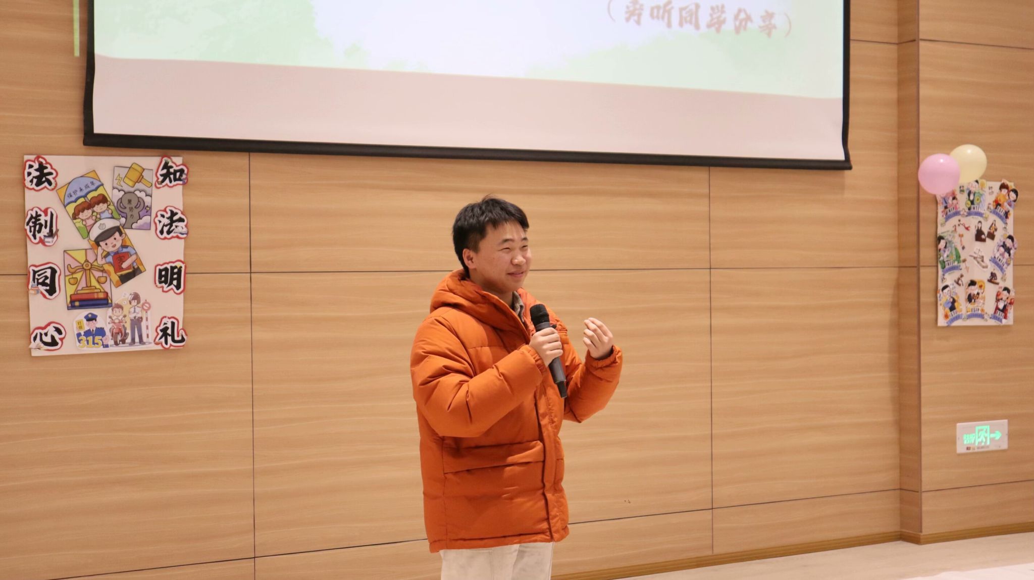 活动还特别邀请了曾到检察院旁听的同学姜跃跃上台,分享他在检察院的见闻和案件感悟。姜跃跃用真实的案例和深刻的体会,向同学们传递了法律的威严与遵守规则的重要性,进一步增强了学生的法治观念。