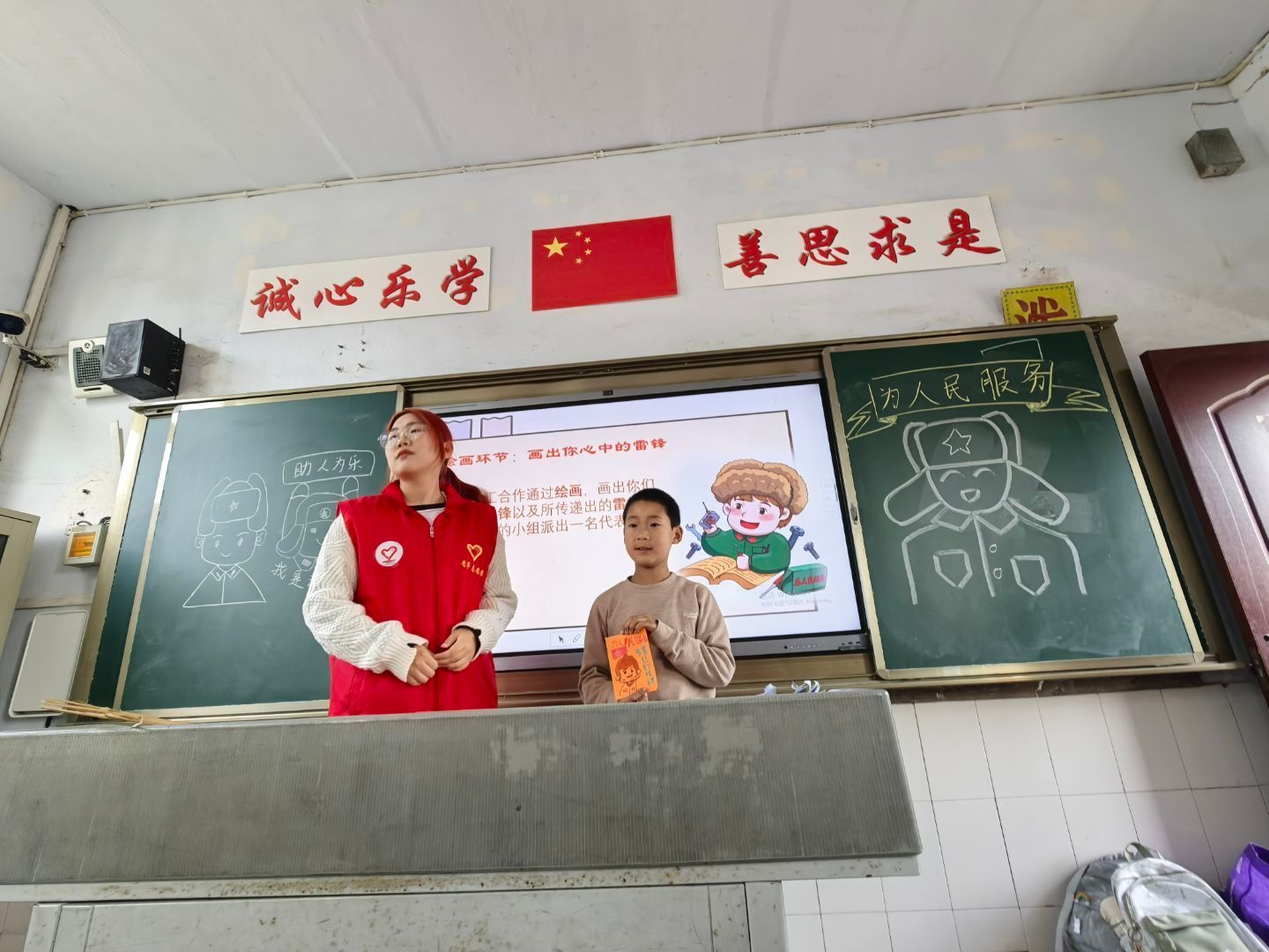讲解结束后,进入绘画环节。志愿者为孩子们分发画笔和画纸,鼓励孩子们画出心中的雷锋及雷锋精神。一时间,五彩斑斓的画笔在孩子们手中挥舞,不一会儿,一幅幅充满童真又饱含敬意的画作便呈现在大家眼前。有的孩子画了雷锋冒雨送老奶奶回家,有的画了雷锋在火车上帮乘务员打扫卫生,还有的画了一群戴着红领巾的孩子在帮助社区老人。每一幅画都是孩子们对雷锋精神的独特理解,孩子们用稚嫩的笔触表达着对雷锋的敬仰和传承雷锋精神的决心。