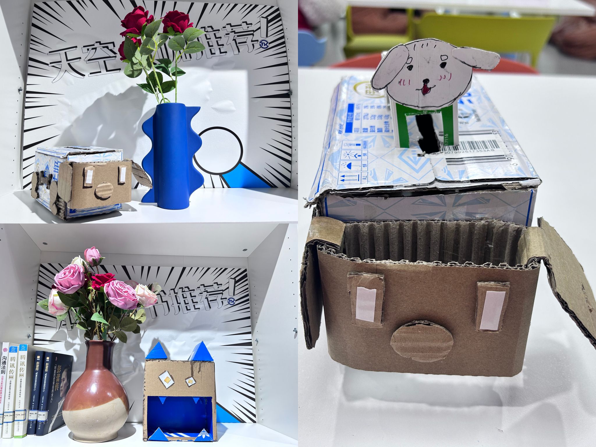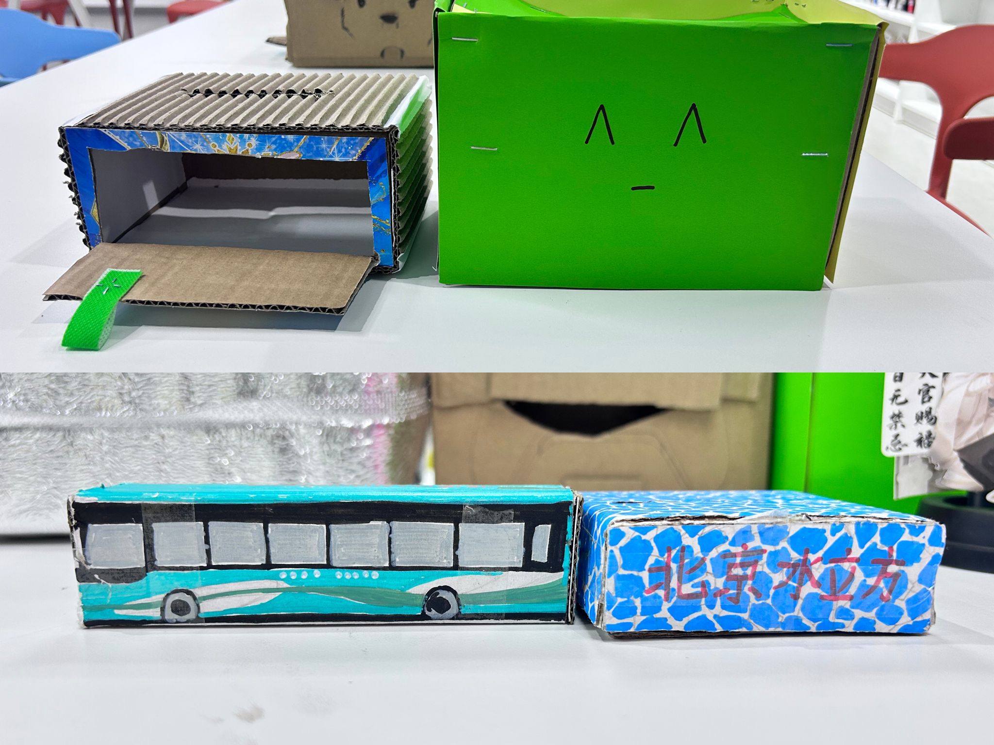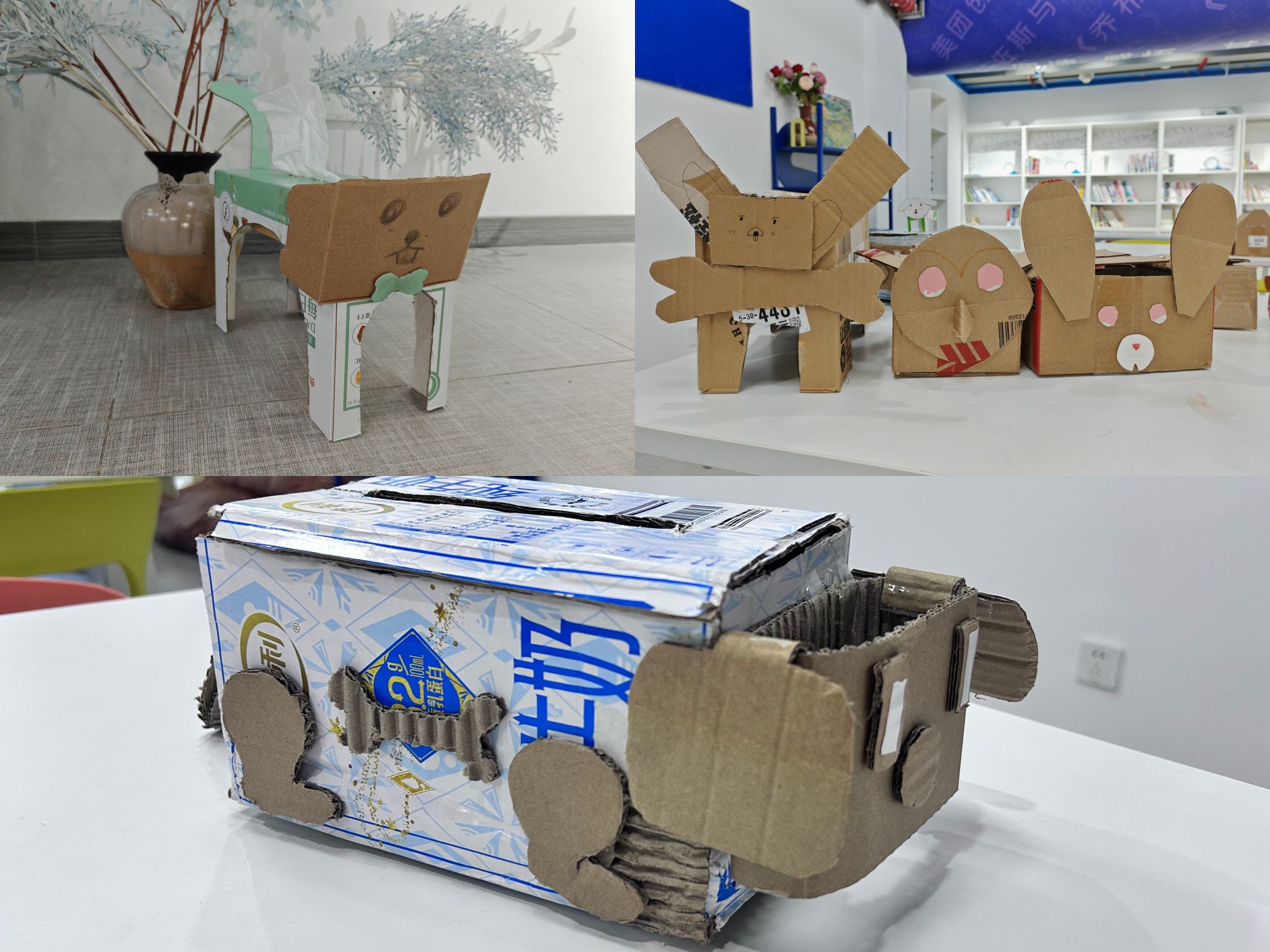一款自制抽纸盒,不仅是实用的生活小物,更是一种生活态度。放置于书桌、茶几或是办公室,每一次使用,都是对美好生活的细腻追求,让温暖与舒适萦绕身边。以可爱的小动物为主体的抽纸盒,不禁让人眼前一亮。活动现场热闹非凡,他们充分发挥想象力,将各种色彩、形状搭配在一起,赋予抽纸盒独特的个性。有的制作成憨态可掬的小狗,有的装饰成俏皮可爱的小兔,每一个作品都充满童趣与温馨,让大家在手工过程中体验到创作的乐趣与成就感。