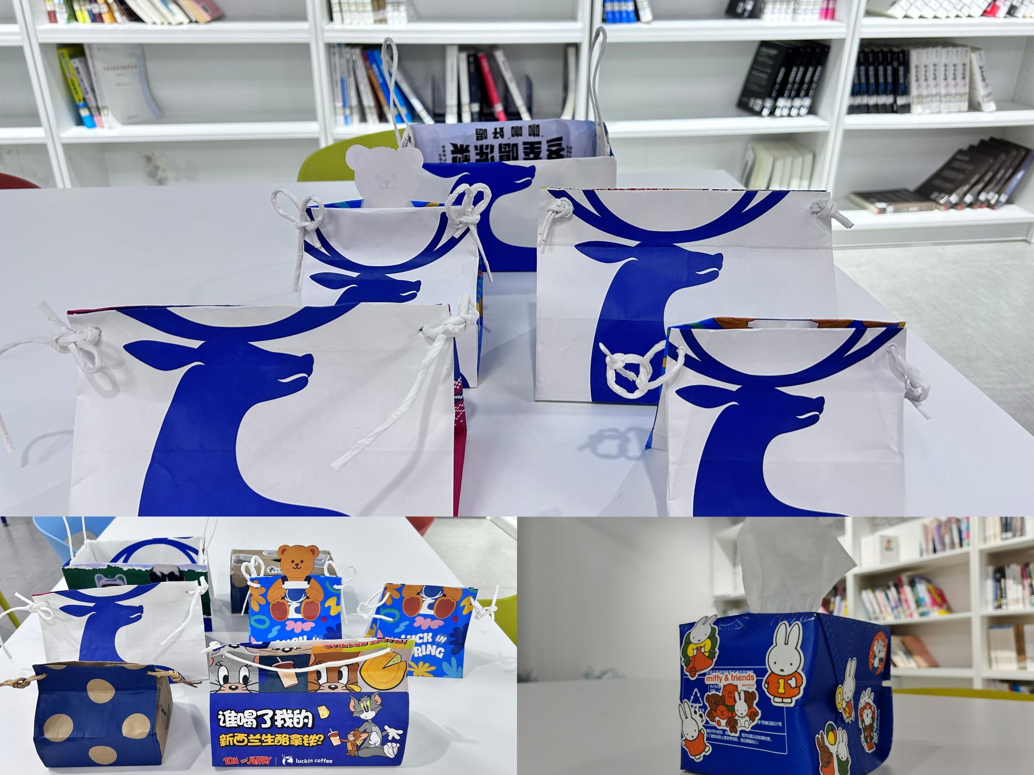 快递盒作为日常生活中常见的废弃物,与抽纸盒融合,体现出日常物品循环利用的可行性与便捷性,反映出生活中各类元素之间的紧密联系。彩纸与抽纸盒的结合,则突破传统抽纸盒外观局限,展示出在手工创作中创新思维的应用,通过色彩与材质的变换拓展了抽纸盒的美学表达。奶茶袋与抽纸盒的融合,呈现出多元且新颖的创意构思,利用奶茶袋的独特图案与材质特性,为抽纸盒增添别样风格。