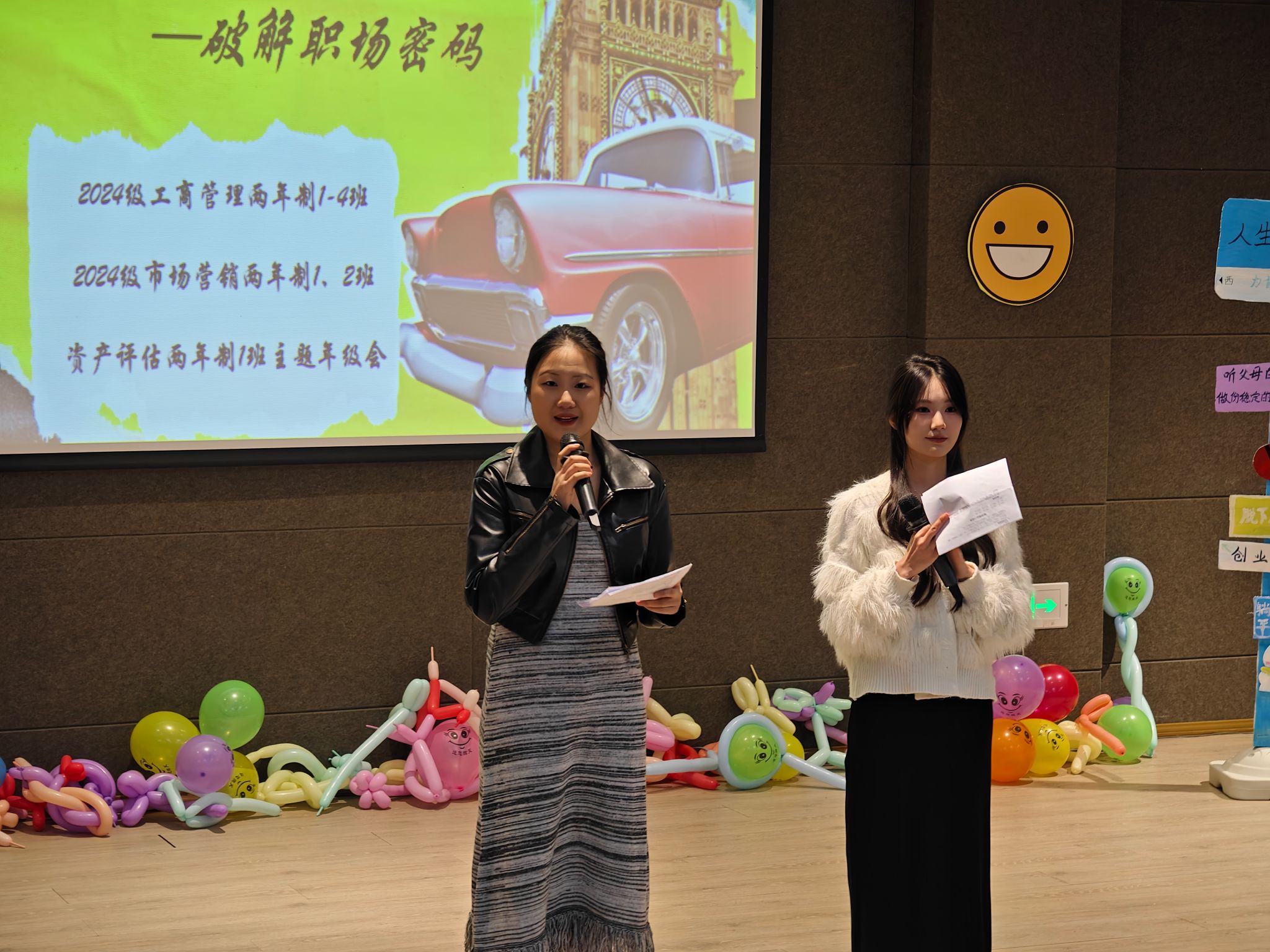 在当今竞争异常激烈的就业环境下,许多大学生在职业规划与就业权益认知上存在明显不足。为引导同学们科学规划职业发展,强化自我权益保护意识,增强就业竞争力,在求职浪潮中脱颖而出。3月20日,2024级市场营销专升本1-2班、工商管理专升本1-4班、资产评估专升本1班,于学校多功能报告厅开展了一场趣味十足的求职“剧本杀”活动。更特邀淬炼商学院基础教研室专任教师李姮、就创中心袁小又、淬炼商学院志愿服务板块指导老师蔡冰霜三位老师助阵,为活动注入专业力量。
