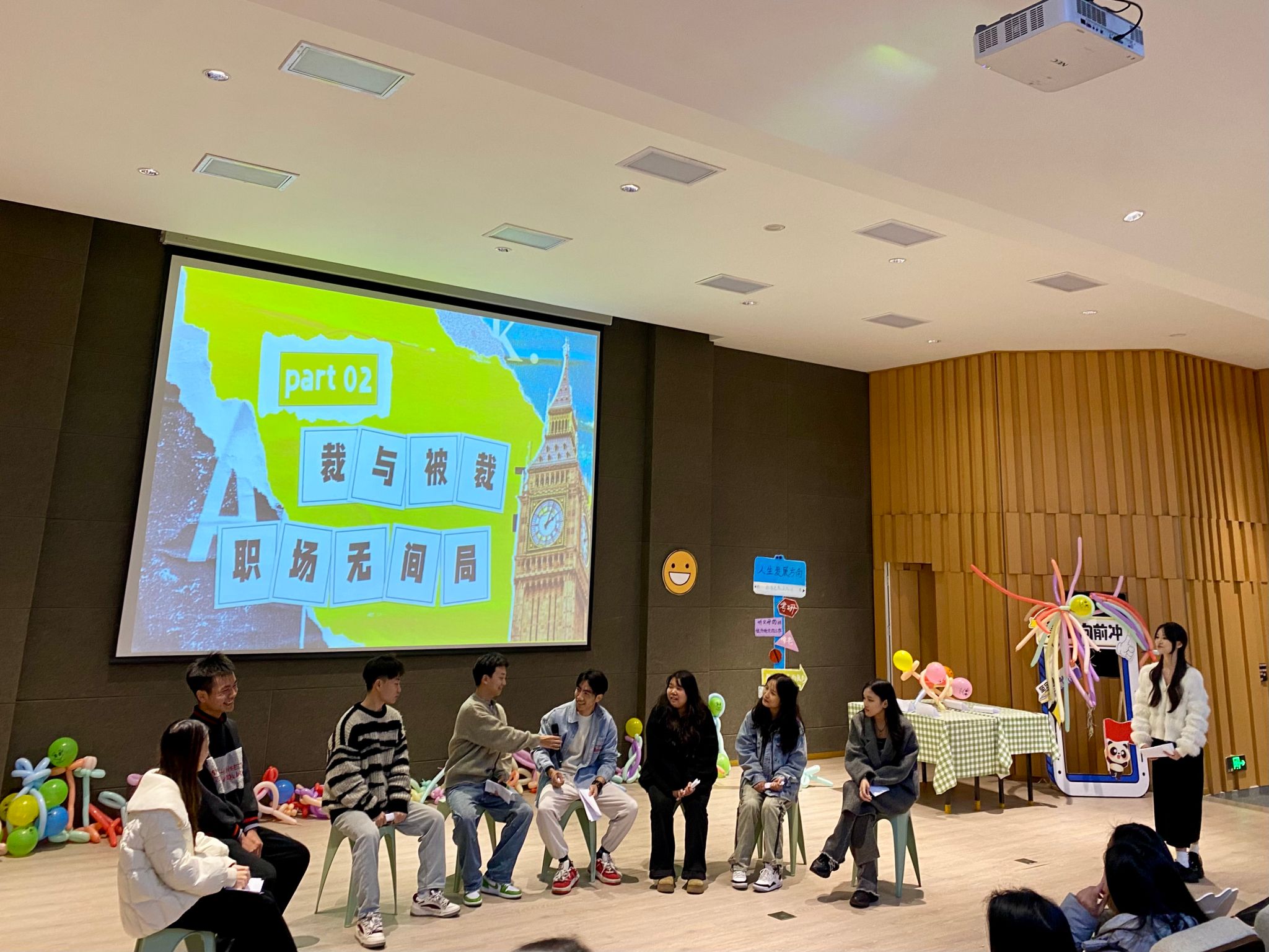 “职场无间局”环节将活动推向高潮。同学们纷纷化身不同的“职场角色”,深度参与到模拟职场场景中,亲身体验团队协作与职场博弈。随后,袁小又老师的“求职技能工作坊”为同学们带来了一场求职干货盛宴。从简历优化到生涯规划,袁老师结合真实案例深入剖析求职技巧,互动提问与抽奖环节更是让同学们在收获知识的同时充满惊喜。
