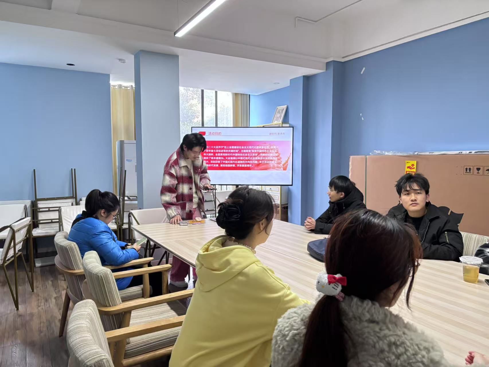 为深入贯彻党的二十大精神,引导青年学子坚定理想信念,勇担时代精神,2025年3月19日,淬炼商学院2024级资产评估一班团支部以“学习二十大,永远跟党走,奋进新征程”为主题,在汇江会议室组织展开了形式多样、内容丰富的专题学习活动。活动由团支部书记钟宜博组织,全班同学参与。