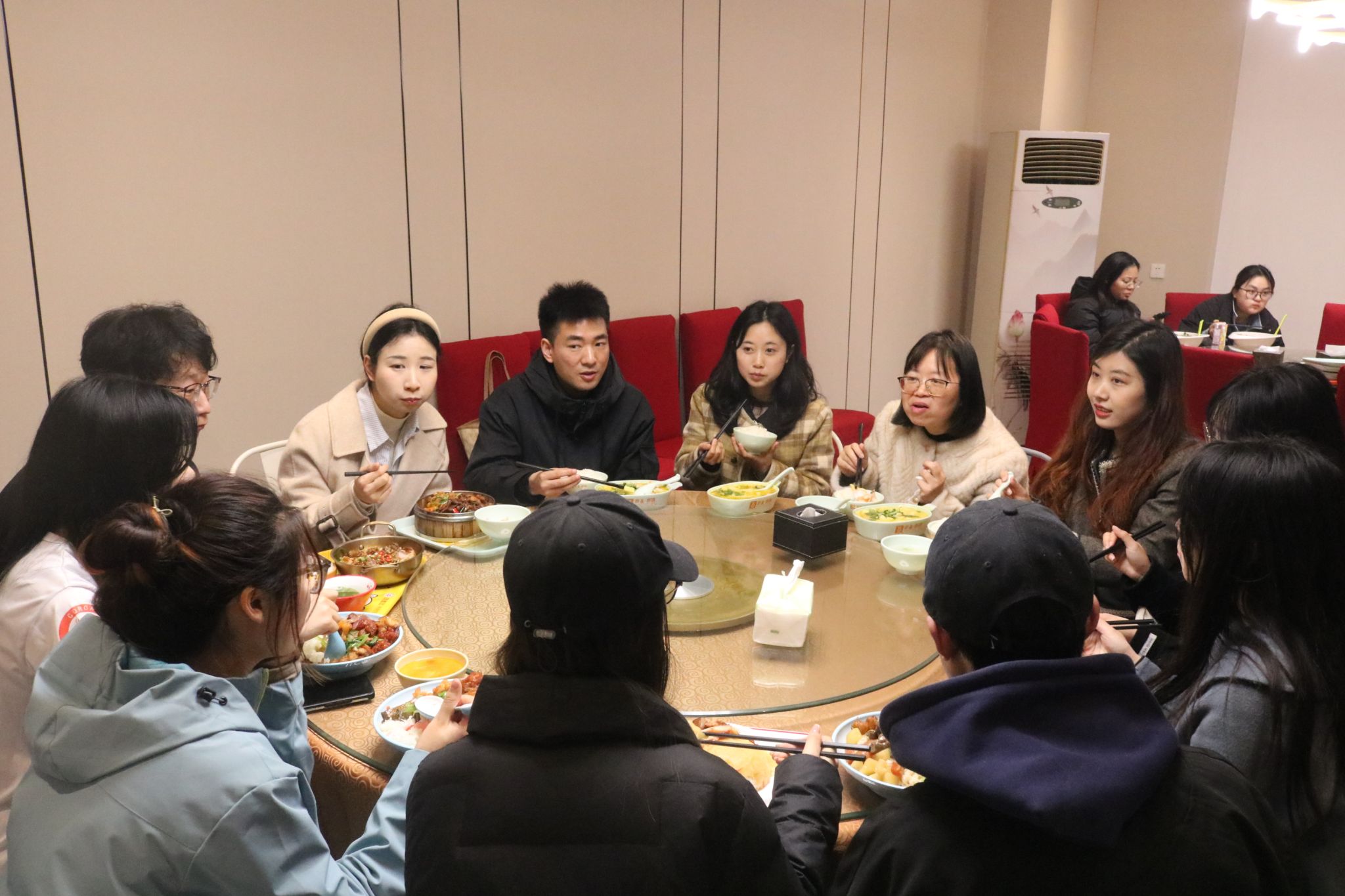 为深入洞察学生的真实状况,进一步拉近学院领导与学生之间的距离,加强彼此间的沟通与交流。淬炼商学院就业助理团于2025年3月21日于文峰食堂秋实厅成功举办“院长共餐叙温暖·师生齐聚绘蓝图——淬炼商学院2024-2025学年第四期院长共膳日”活动。本次活动有幸邀请到副院长陈晓曼,工商管理教研室老师袁翠和市场营销教研室老师吴丽,辅导员老师金政杕、易华琴、杨子莹,围绕学习、生活、未来发展等话题,与同学们展开了一场真挚而深入的交流。