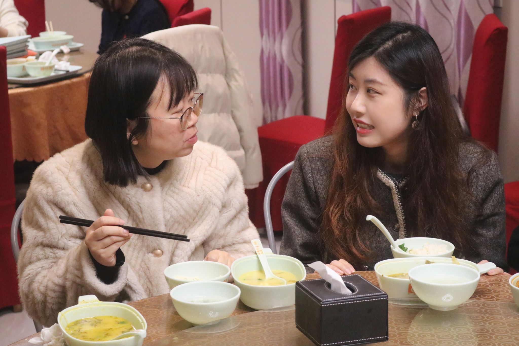 活动现场,师生围坐一堂,在轻松的用餐氛围中交流热烈。一位大一学生分享了自己充实的大学生活,入校便加入了双创,在推进新能源电池项目时遇到了诸多难题,但面对困难时,团队的力量让她全力以赴攻克难关。另一位同学则表讲述到自己在工作与学习之间难以平衡的困扰,常常感到疲惫,精力难以集中。对此,陈晓曼副院长表示,这种情况在学生群体中具有一定普遍性,陈院长提醒同学们在提升能力的同时,务必把学习放在首位,在保障学业的前提下合理安排工作,也要保证充足的休息时间,避免因过度劳累而影响学业和个人发展。