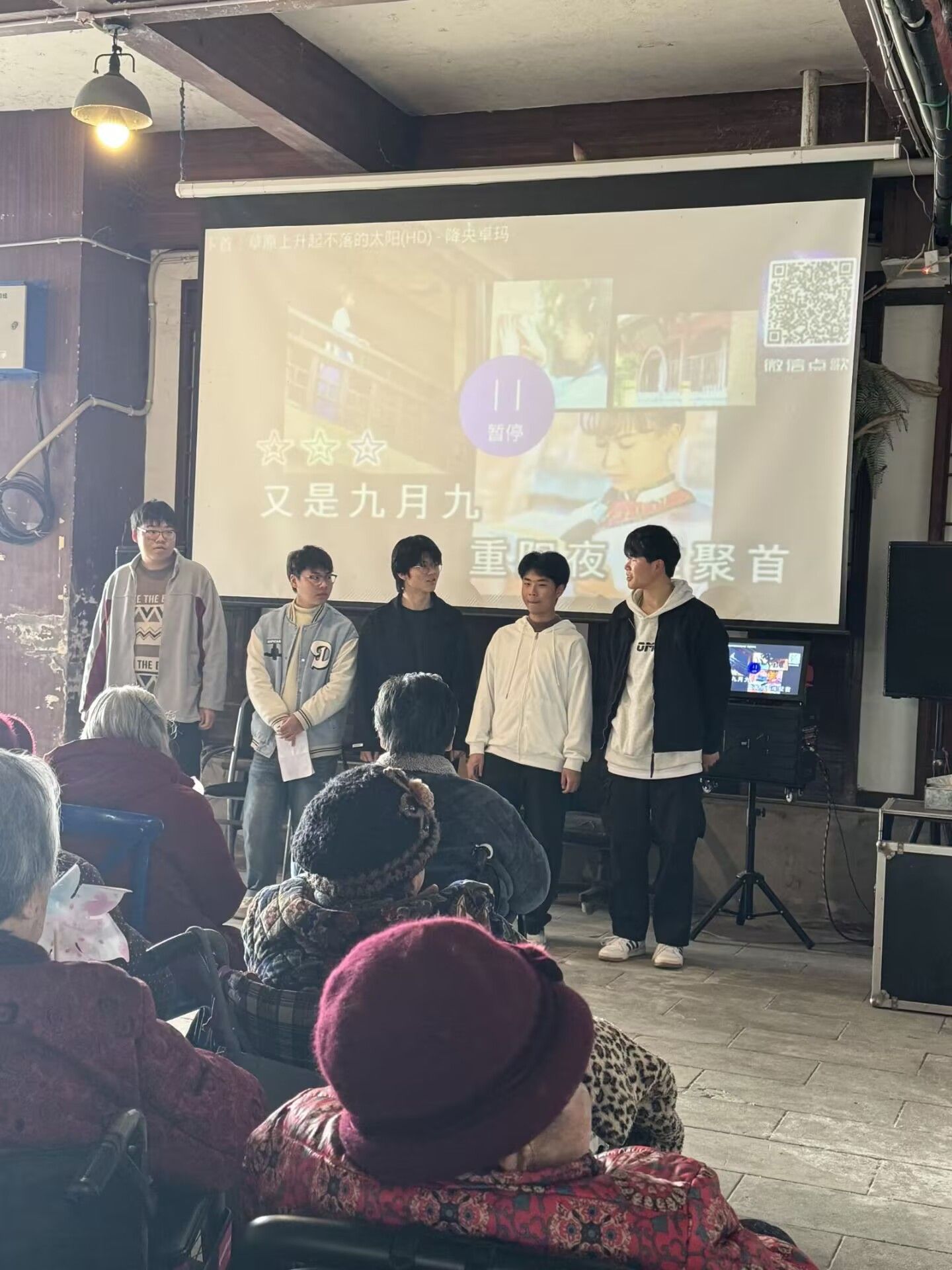 “身姿灵活反诈宣,手势翩翩意万千”,在所有的活动环节中反诈手势对于老年人来说是最难的,但歌声翻飞,终于在同学们耐心地重复一个又一个动作的教学下,取得了成功。拍照道具流转,一张张照片在咔哒声中保存下来,老人们一个个上前留下他们在反诈活动中的足迹。游戏环节的结束也预示着关爱老人反诈活动进入了尾声,希望这次活动可以切切实实的帮助老人防范诈骗,让他们感受到温暖。