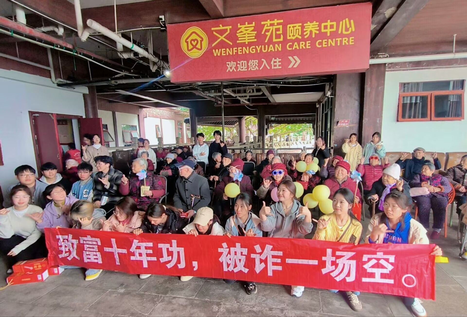 “绿遍山原百满川,子规声里雨如烟”三月正是万物复苏,春意盎然,也时关爱老人防范诈骗的好时节,为了守护老人们的“钱袋子,”提高他们的防诈意识,筑牢防诈城墙。淬炼商学院2024级工商管理06团支部27人于2025年3月21日前往文峰古街文峯苑颐养中心开展“诈骗同心,你我同行·骗子哭腔坐念打,我自巍然不信他”主题完满班团活动。将反诈落实到行动中,践行反诈的同时关爱老人,在活动中让老人们感受到在爱与陪伴,帮助老人们筑牢反诈“一线”,让他们识清诈骗套路,安享晚年生活。