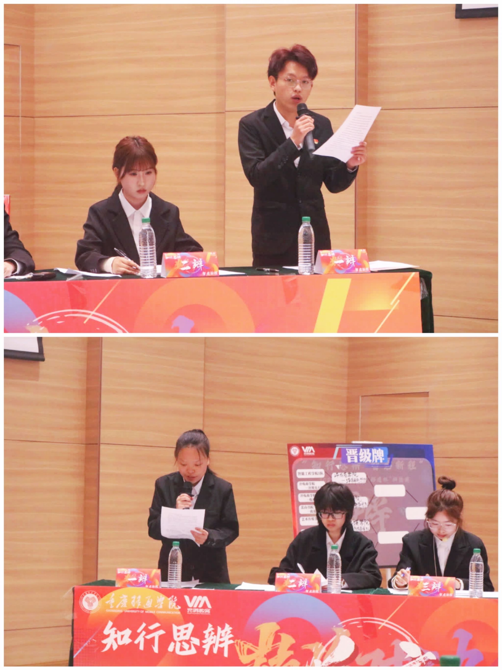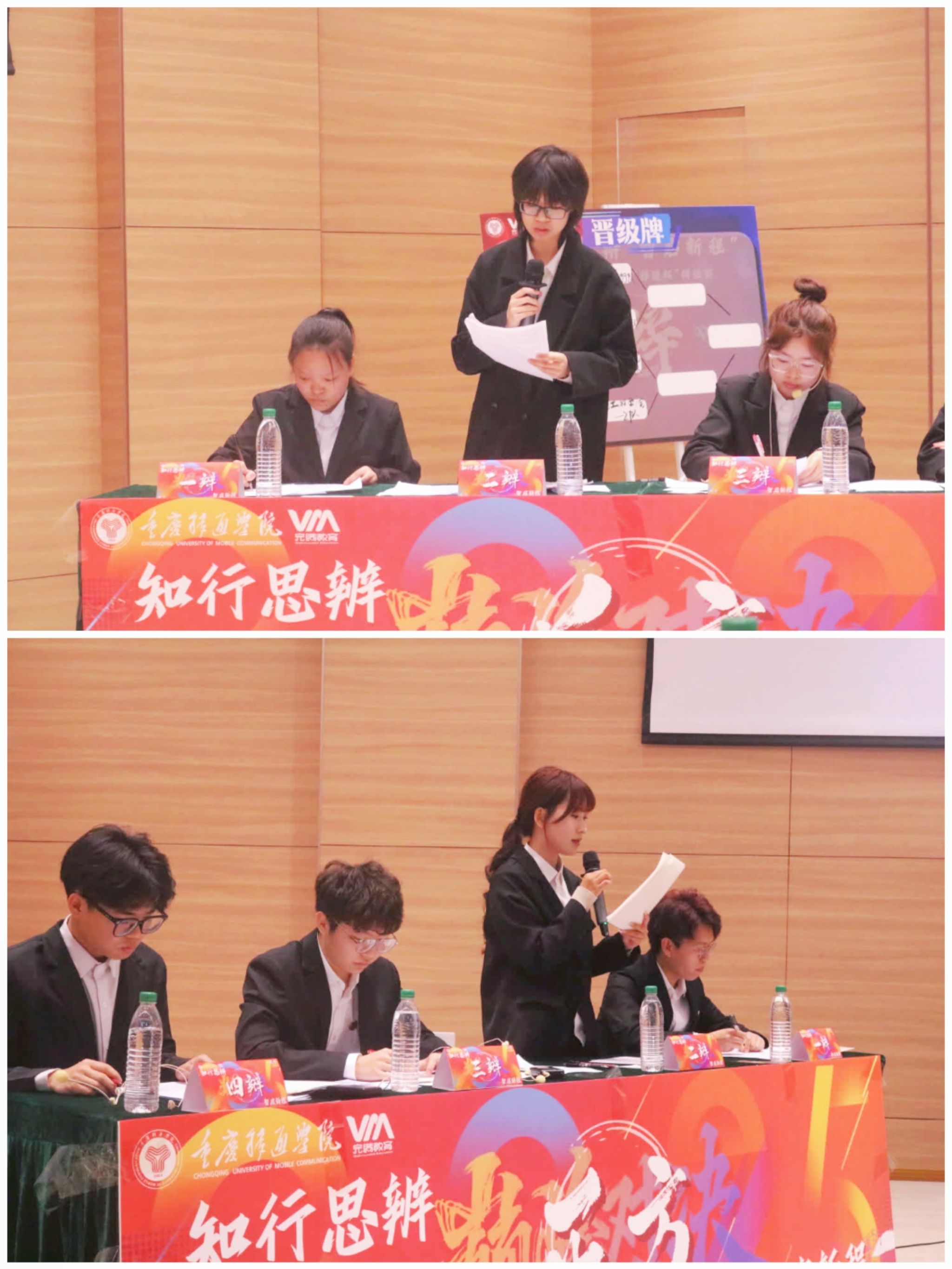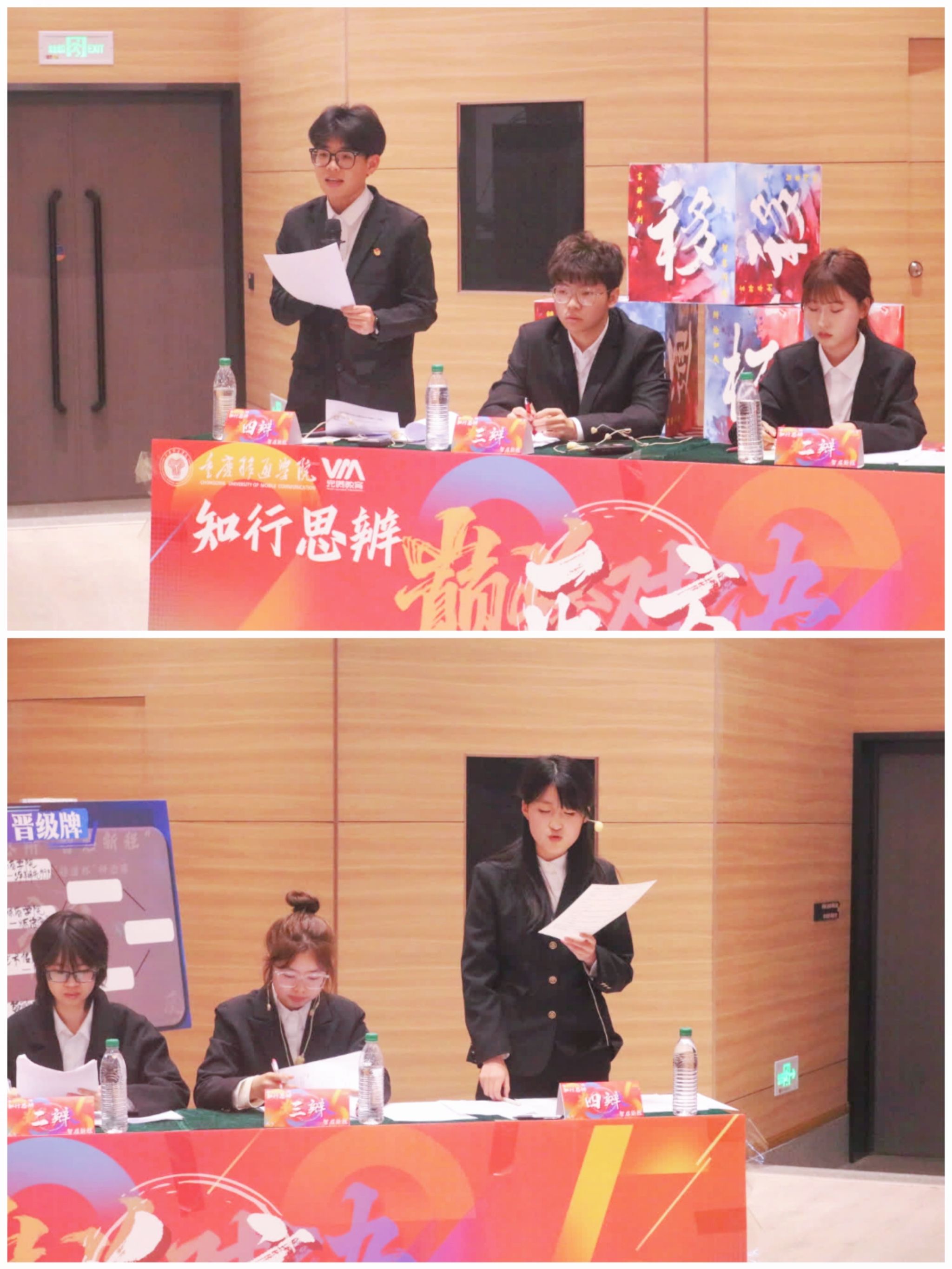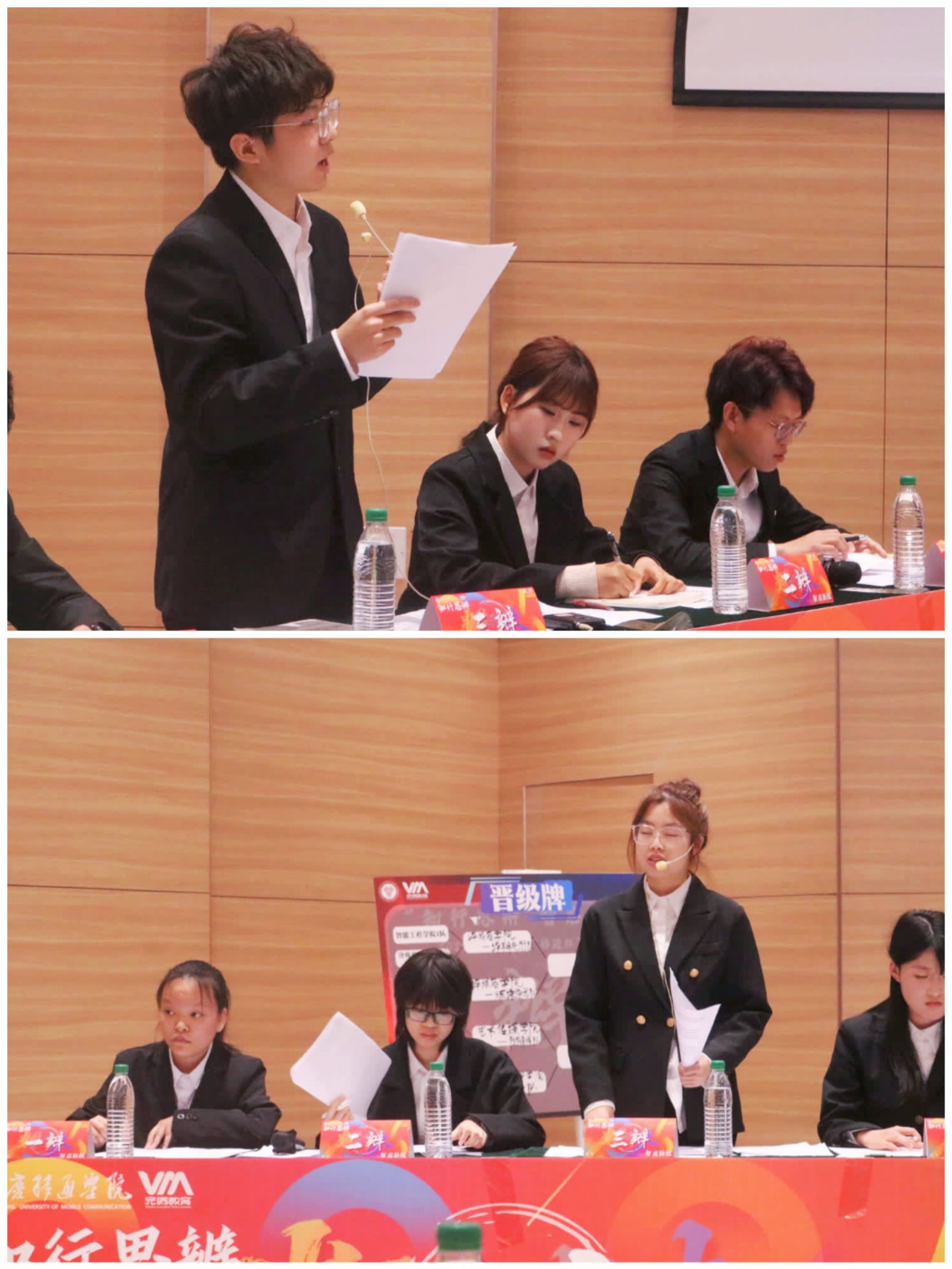 重庆移通学院2024-2025学年“移通杯”辩论赛四强赛于4月2日在六度空间•创梦空间正式打响,淬炼商学院的两支优秀队伍将在这里追逐晋级决赛的机会。淬辩先行队与炼语逐光队就“运动员偶像化有/不利于发扬竞技体育精神”这一辩题,展开了一场精彩纷呈的思想博弈。正所谓“笔落惊风雨,诗成泣鬼神”,这场辩论也定将留下浓墨重彩的一笔。最终炼语逐光队遗憾止步四强、淬辩先行队成功进入决赛。